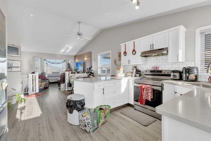Discover the potential in this 5-bedroom home set on a large pie-shaped lot in a convenient, family-friendly neighbourhood. The basement has been suited with a full kitchen and private separation from the upper level, suitable for extended family, rental income, or additional living space. The lower level also features a spacious family room, two bedrooms, a 3-piece bathroom, and rough-in for infloor heat. The main level offers a bright open floor plan with vaulted ceilings and three bedrooms, this property offers flexibility for families, investors, or anyone looking for a mortgage helper. In addition to the suited basement, updates over the past year include a new furnace, hot water tank, air conditioning, upstairs fridge, the washer, and refreshed landscaping. The fully fenced yard includes a detached double garage, RV parking, a two-tier deck, and a hot tub with gazebo. A versatile property offering options for a family home, income generation, or an investment in a desirable location.