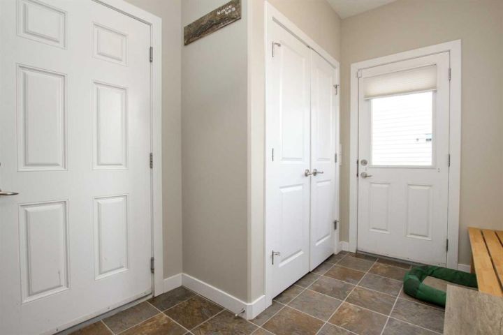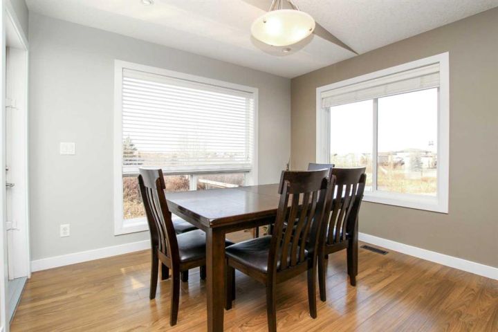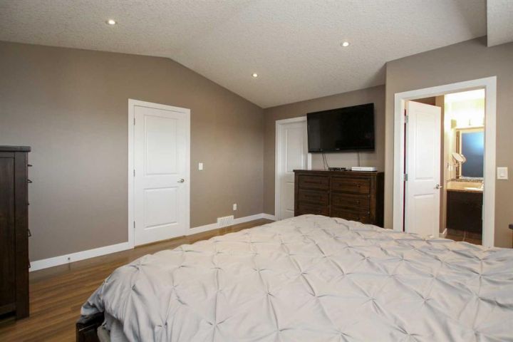 FULLY DEVELOPED 5 BEDROOM, 3 BATHROOM MODIFIED BI-LEVEL ~ WALKOUT BASEMENT ~ BACKING ONTO A WALKING PATH & POND ~ SEPARATE SIDE ENTRY ~ Covered front veranda leads to a welcoming foyer with high ceilings ~ The open concept main living space is complemented by soaring vaulted ceilings and large windows that fill the space with natural light and have views of the natural space just behind ~ The kitchen offers a functional layout with plenty of dark stained cabinets, full tile backsplash, tons of granite counter space including a massive island with pendant lights above, and a walk in pantry ~ Easily host large gatherings in the dining space that's surrounded by floor to ceiling windows, and garden door access to the sunny west facing deck with more great views ~ The spacious living room features a cozy gas fireplace with stacked stone surround, mantle and space for your TV above ~ 2 main floor bedrooms are both a generous size with ample closet space ~ 4 piece main bathroom has an oversized vanity and a linen closet ~ The private primary suite is tucked away on it's own level and features soaring vaulted ceilings, a spa like ensuite with a soaker tub and separate walk in shower, a large walk in closet, and additional storage space ~ Lower level mud room just off the garage has large windows and offers a second, separate entry on the side of the house with access to the basement with conveniently located laundry and a large storage just at the bottom of the stairs ~ The fully finished basement features high ceilings, large above grade windows, built in speakers and operational in floor heat and two laundry hook ups~ Large L-shaped family room with plumbing roughed in for a wet bar has plenty space for a media area and games tables ~ Garden door from the family room walks out to a covered concrete patio with wiring for a hot tub ~ Two basement bedrooms are located adjacent to a 4 piece bathroom and linen closet ~ 25' L x 24' W double attached garage is insulated, finished with painted drywall, has built in shelving, two overhead doors and a man door leading to the front yard ~ The backyard is landscaped, has a fire pit, garden shed, and is fully fenced with direct access to the walking trails and natural reserve just behind ~ Easy access to parks, playgrounds, schools, and shopping ~ Pride of ownership is evident in this well cared for home!