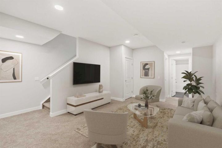 Welcome to this beautiful brand-new home located in the highly desirable community of Seton Ridge. Built by Brookfield Residential, the Wicklow model offers nearly 2,300 sq. ft. of thoughtfully designed living space across three fully developed levels, featuring 4 bedrooms, 3.5 bathrooms, and two spacious living areas, ideal for today’s modern family. The main floor showcases an open-concept layout with 9-foot ceilings and large north-facing windows that fill the space with natural light and offer views of a green space and future school site across the street. The chef-inspired kitchen is a true highlight, complete with full-height cabinetry, a large central island, pantry, and a premium stainless steel appliance package, including a gas range, built-in microwave, and chimney-style hood fan. The kitchen flows seamlessly into the dining area, where sliding patio doors lead to the backyard, perfect for easy indoor-outdoor living. Upstairs, a central bonus room provides separation between the primary suite and two additional bedrooms, offering added privacy and flexibility. The primary bedroom features a walk-in closet and a 4-piece ensuite with dual sinks and a walk-in shower. A full bathroom and convenient upper-level laundry complete the floor. The fully developed basement adds even more functional space with a large recreation room, a fourth bedroom, and a full bathroom, perfect for guests, older children, or a home office. The backyard provides plenty of space for future development, including the option to add a double detached garage, while still offering room for outdoor living or gardening. This home comes complete with a builder warranty and Alberta New Home Warranty, giving you peace of mind as you move in.