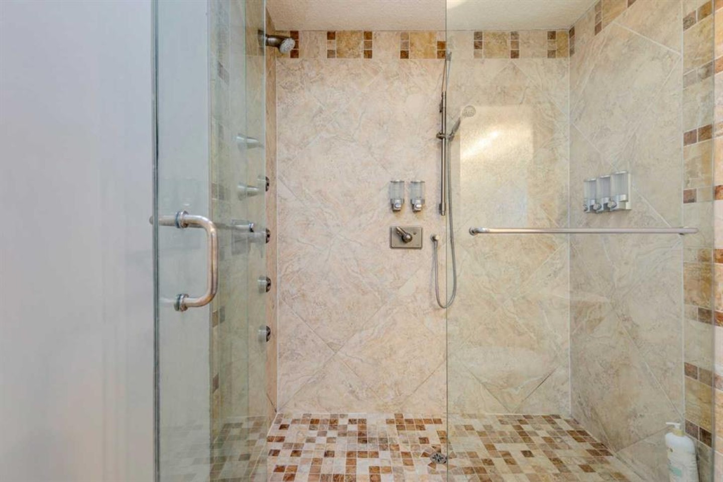 Imagine stepping through the front door and being welcomed into a bright, open foyer, complete with a convenient coat closet. From here, your eyes are drawn straight ahead into the spacious living room, where a large bay window frames views of the beautifully manicured front yard and fills the space with natural light. Warm hardwood flooring guides you through this inviting main level and into the adjoining dining area, which flows seamlessly into the updated kitchen. Here, quartz countertops, extensive cabinetry and high-quality stainless steel appliances creates a perfect blend of style and functionality. A cozy breakfast nook offers the ideal spot for casual morning coffee. Heading up to the second level, you’ll find three comfortable bedrooms. The primary suite overlooks the private backyard and features a luxurious ensuite with an oversized walk-in shower, rain head, and four body sprays. Two additional generously sized bedrooms, each with deep closets and large windows, share a beautifully finished 4-piece bathroom boasting custom vanities, floor-to-ceiling travertine tile, and a glass-enclosed soaker tub/shower. Continue down to the walkout basement, where a warm and inviting family room awaits. A classic wood-burning brick fireplace anchors the space, complemented by a wet bar and a convenient 2-piece bathroom. Just a few more steps lead to the lower level, where you’ll find a practical laundry room featuring its own dog/utility shower—perfect for pets, work gear, or muddy boots—as well as direct access to the garage and ample storage. Stepping outside, the backyard is a true retreat. Multiple decks, a patio, mature trees, and perennial gardens create a serene setting for outdoor dining, gardening, or simply relaxing. Tucked into a private corner of the yard, a year-round spa invites you to unwind under the stars, enhanced by thoughtfully placed landscape lighting. This beautifully maintained and thoughtfully updated home offers over 1,700 sq ft of developed living space in the highly sought-after community of Edgemont. Recent upgrades include a new roof (2020), fridge, electric range & oven, over-the-range microwave, and hot water tank (2024), as well as a new washer (2023) Brand New Deck (2025). Located in a well-established neighborhood known for top-rated schools, scenic pathways, parks, and convenient access to major routes, this home seamlessly blends comfort, lifestyle, and long-term value. Come experience this exceptional Edgemont property for yourself—your next home awaits.