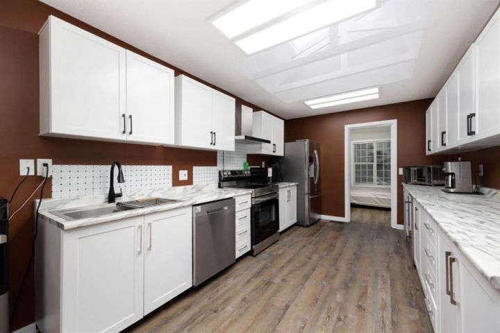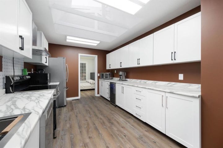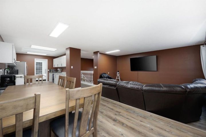 Welcome to this beautifully renovated bi-level located in one of Fort McMurray’s most sought-after neighbourhoods, Thickwood. Loved for its mature trees, established community feel, and unbeatable convenience to schools, shopping, parks, and walking trails, this area offers the perfect blend of comfort and lifestyle. This 6-bedroom, 2-bath home has been upgraded from top to bottom, delivering a fresh, modern living experience with thoughtful renovations throughout.  Inside, the main level welcomes you with an open-concept layout highlighted by a charming sunken living room that adds warmth and character. The kitchen is a true centerpiece—bright, functional, and designed for everyday living. With generous counter space, refreshed cabinetry, modern lighting, and appliances that are only a year old, it naturally becomes the heart of the home.  You’ll also find 2 bedrooms upstairs, both bright and refreshed with contemporary finishes.  Downstairs, the home features a walk-out basement—a rare and valuable feature that brings in great natural light and easy access to the yard. This level includes 4 additional bedrooms, new windows, and thoughtful updates that make the space practical, comfortable, and versatile.  Every detail has been considered—bedrooms, doors, lighting, concrete work, decking, and exterior improvements have all been completed to ensure a move-in-ready home with modern appeal.  Outside, the features continue to impress. A durable metal roof provides peace of mind for years to come. The updated deck and fully fenced yard offer space to relax, play, and entertain. Evenings by the fire pit make the backyard perfect for year-round enjoyment. A new shed adds storage; the attached single garage includes a brand-new remote door, and there’s ample parking for vehicles and toys. From top to bottom, this home has been transformed into a warm, inviting space that’s ready for its next chapter.