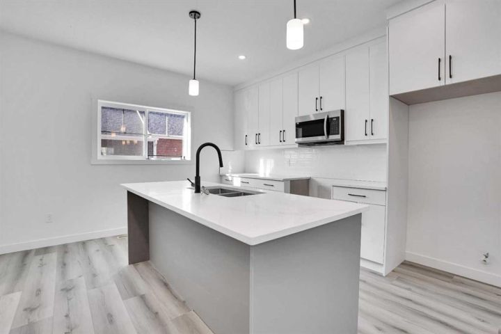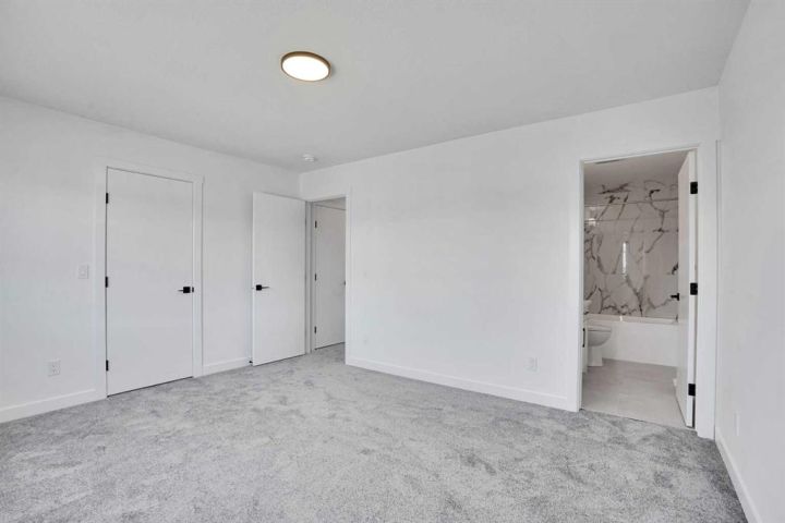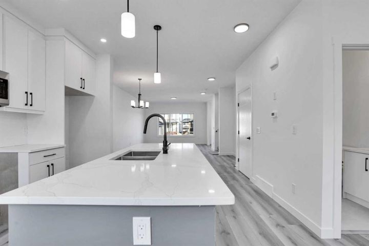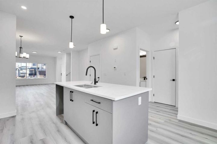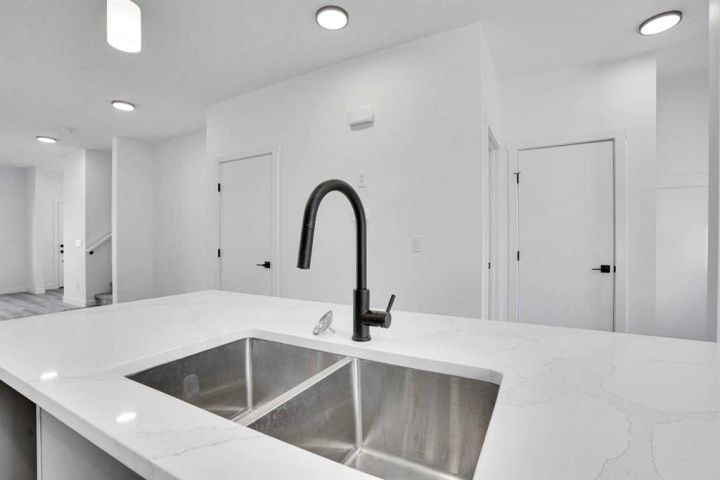 Welcome to 59 Baysprings Terrace, where modern comfort meets timeless design. These brand-new townhomes, built by Luxury Custom Builders, offer a range of thoughtfully designed layouts tailored for contemporary living. Step into a bright and open-concept main floor featuring luxury vinyl plank flooring that flows beautifully throughout the space. At the heart of the home is a gourmet kitchen with a large quartz island, sleek stainless steel appliances, and ample cabinetry—ideal for both entertaining and everyday family meals. A convenient half bath completes the main level. Upstairs, you’ll find three spacious bedrooms, each with walk-in closets and custom built-in shelving. The primary suite is a true retreat—large enough for a king-size bed and complete with a luxurious 5-piece ensuite, including dual sinks, a deep soaker tub, and a separate walk-in shower. A dedicated laundry area on this floor adds everyday convenience. The unfinished basement comes with roughed-in plumbing and awaits your personal vision—ask about available customization options! Enjoy a west-facing, fully fenced backyard with professional landscaping and access to a double detached garage. Located in a well-maintained, self-managed complex with low condo fees, this community offers a warm and welcoming atmosphere. Take advantage of the nearby waterfront trails, paddle-boarding, and winter skating/hockey on the Canals. Families will love the walkability to parks, playgrounds, Nose Creek School (K–4), and close proximity to shopping, dining, and essential services. Whether you’re seeking a spacious family layout or a more compact design, there’s a unit here to match your needs. Note: The Room Dimensions of each unit may vary as the measurements were taken from the builder blueprints. Book your private tour today