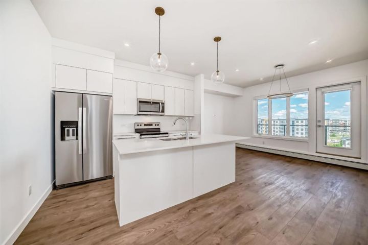Welcome to Skyview North by TRUMAN! This stunning unit offers a bright and airy 2-Bedroom, 1-Bathroom home in the established community of Skyview Ranch, complete with a titled underground parking stall. Experience the pinnacle of luxury living with high-end finishes, including wide plank flooring and a designer lighting package. The custom chef-inspired kitchen boasts stainless steel appliances, soft-close cabinetry, and elegant quartz countertops. The primary bedroom features a walk-through closet leading to a luxurious four-piece bathroom, while the spacious secondary bedroom provides a versatile area perfect for a guest room, home office, or additional living space. Additional conveniences include an in-suite washer and dryer, stylish window coverings, and a balcony off the living room perfect for relaxation. Skyview North is ideally located just steps away from amenities such as shopping at Sky Point Landing, green spaces, and extensive playgrounds. Enjoy easy access to both Stoney and Deerfoot Trail, making commuting a breeze. Schedule your showing today and discover exceptional living at Skyview North! *Photo Gallery of Similar Unit