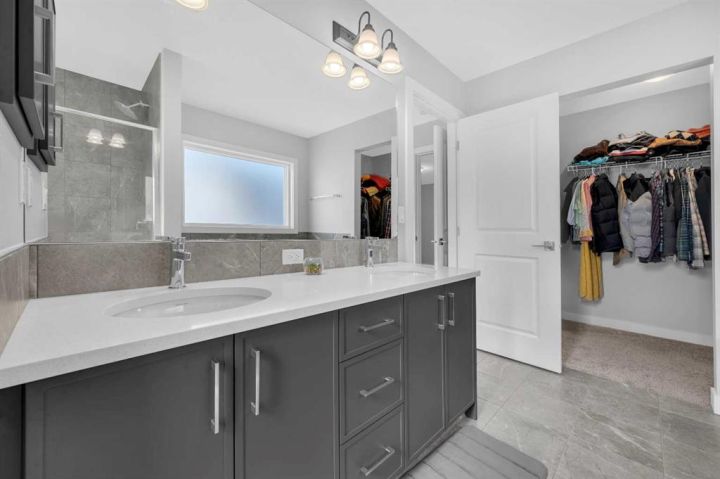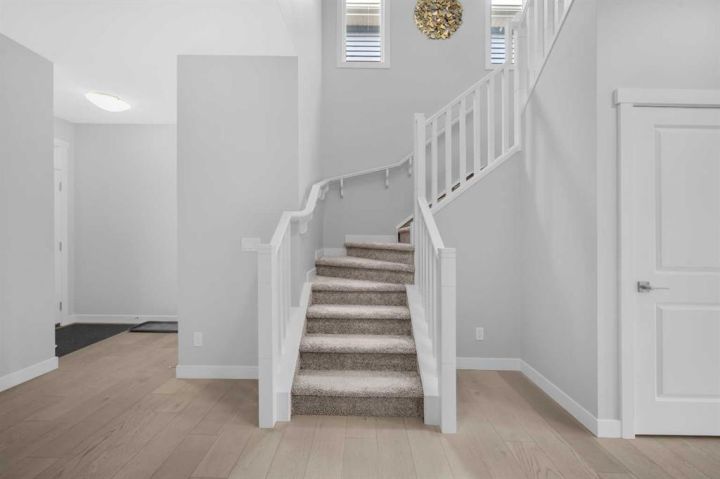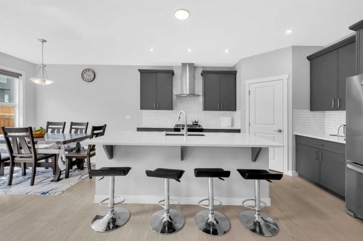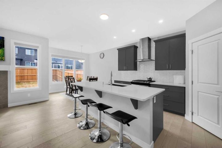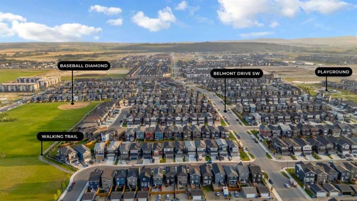 Welcome to 149 Belmont Villas SW, a beautifully appointed family home offering over 2,064 square feet of sophisticated living space. This stunning property boasts a modern and functional layout designed for contemporary living and entertaining. The main floor features a bright and open plan, seamlessly connecting the living, dining, and kitchen areas perfect for daily life and hosting guests. The spacious living room is filled with natural light, the dining area offers a perfect setting for family meals, and the modern kitchen is a chef's delight, equipped with a full suite of stainless steel appliances. A practical den and a convenient 2 piece bathroom complete this level, along with direct access to the oversized attached garage. Upstairs, the upper floor is a private retreat for the entire family. It features a generous primary bedroom with a luxurious 5-piece ensuite bathroom and a walk-in closet, providing a perfect sanctuary to unwind. Two additional well sized bedrooms, a second full 4-piece bathroom, a functional laundry room, and a spacious family room offer ample space for relaxation and comfort, ensuring everyone has their own place to recharge. The basement awaits your imagination with an existing separate entrance for future development. Nestled in the highly sought after community of Belmont, this home offers an exceptional lifestyle with unparalleled access to urban amenities and natural beauty. Families will appreciate the proximity to top rated schools, making the morning school run a breeze. The community is surrounded by numerous parks and playgrounds, providing endless opportunities for outdoor recreation and leisurely strolls. Golf enthusiasts will love being just moments away from pristine courses. Everyday conveniences are covered with shopping centers and retail options nearby, and excellent public transit access ensures easy commutes to downtown Calgary and beyond. This is more than just a house; it's a place to build a life. It combines modern elegance with practical family living in one of Calgary's most convenient and family-friendly neighborhoods. This is a must see property for those seeking space, style, and a fantastic community.