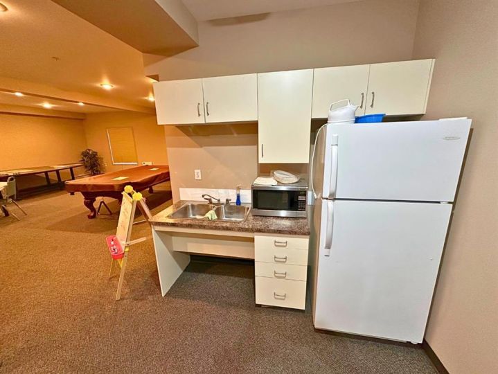 Affordable & Accessible Living in Monarch Place! Here’s a great chance to own a wheelchair-accessible 2-bedroom condo in the quiet community of Kentwood. This bright end-unit offers a smart, functional layout with 800+ sq ft of comfortable living space—perfect for a first-time buyer or anyone looking for a solid revenue property. Inside, you’ll find two generous bedrooms, a spacious 4-piece bathroom, and an open-concept main area. The kitchen features a handy breakfast peninsula and flows into the dining and living room, leading out to a private 5'9" x 12' covered balcony—a great spot to relax outdoors. The unit includes one assigned outdoor parking stall, plus plenty of visitor parking for guests. Condo fees are a very reasonable $340.49, covering all utilities except power. The building has no age restrictions, party/games room. bike/scooter storage and pets are welcome (with size restrictions). A solid, affordable option in a peaceful location.