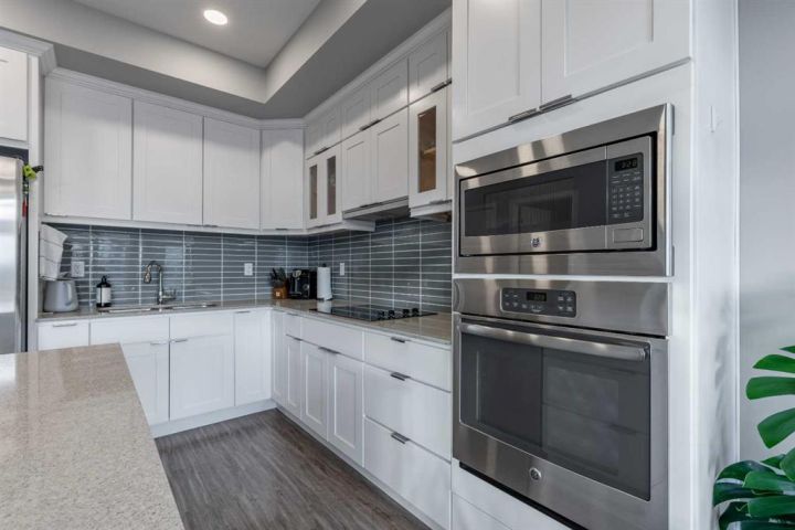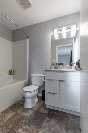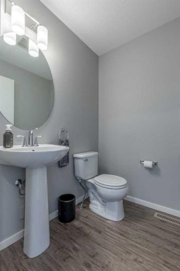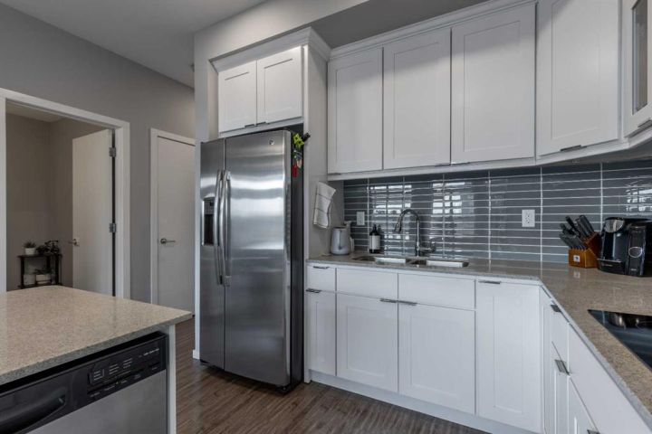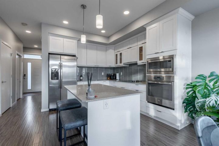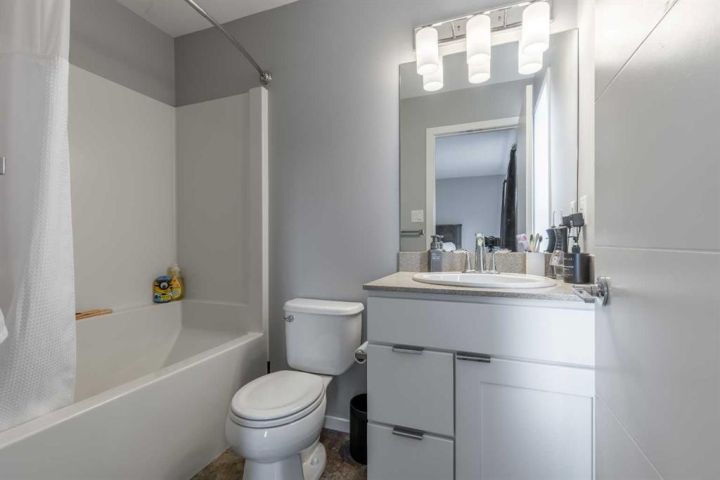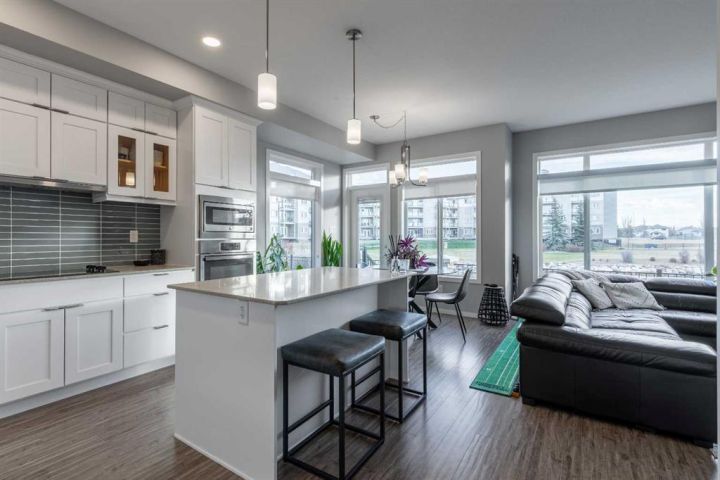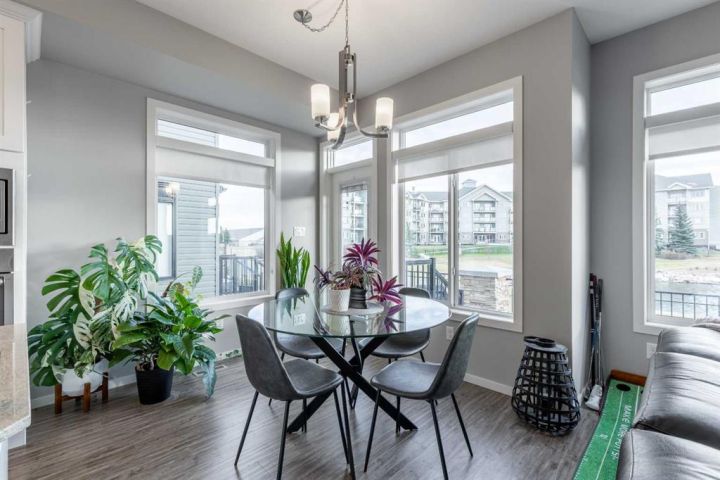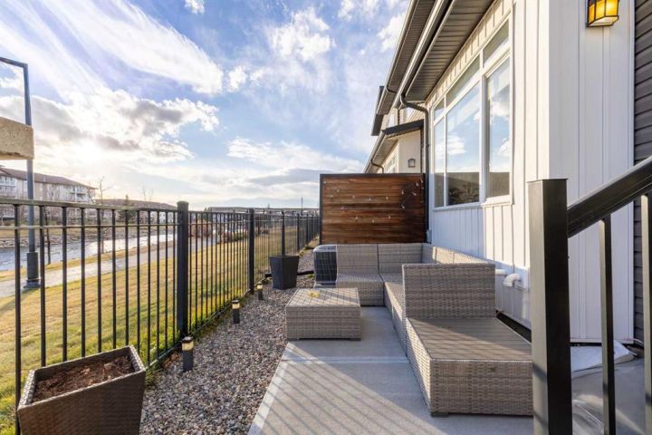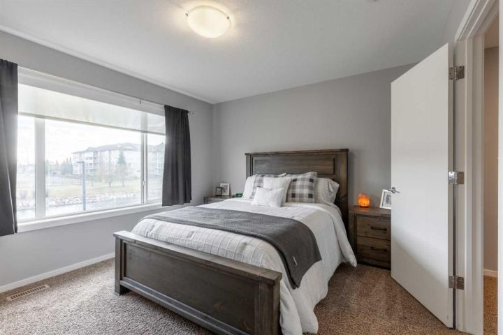 A Skye condo that backs onto Highlands Park! This dual primary home offers tremendous south-facing views of the lake, a single attached garage, walking access to major amenities and so much more. The main floor is bright, has a powder room, quartz counters in the kitchen and a cozy patio. There are two bedrooms upstairs both with 4 piece ensuites and walk-in closets. The basement is partially finished with framing completed already! It just needs your finishing touches!