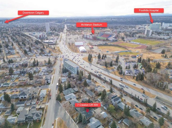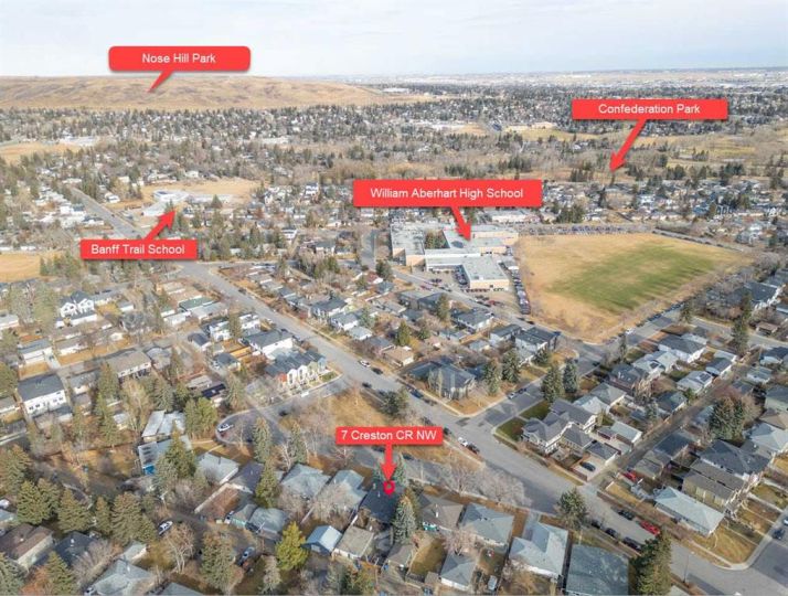 7 Creston Crescent NW | Location Location Location! | Welcome To This Exceptionally Well-Maintained Raised Bungalow On A Desirable R-CG Lot In The Heart Of Banff Trail | Offering Three Self-Contained Rental Units, Two Are illegal Suites, Each With Private Entrances & Separate Laundry, This Property Is Ideal For Multi-Generational Living | Main Floor ($1,800/Month) Features Over 1,527 SQ FT Of Bright, Comfortable Living Space, Complete With Central Air Conditioning For Year-Round Comfort | 3 Bedrooms 1.5 Baths On Main Level | The Kitchen Is Bright & Spacious With Breakfast Nook & Overlooks Your Private Backyard Where You Can Easily Monitor the Activities of Your Children & Pets | Multi-Level Deck In Backyard & Firepit Area Is Perfect For Entertaining | Basement Features Over 1,452 SQ FT Of Living Space | Lower Level Front Walk-Out illegal-Suite (Owner’s) Features A Large Primary Bedroom With 4 PCE Bath, Wood Burning Fireplace, Laundry & Large Storage Area | Bacyard Walk Down illegal Suite ($1,400/Month) Features A One Bedroom, 3 PCE Bath & Laundry | Secluded Deep Lot With An Asphalt Front Driveway Providing Two Parking Stalls, Plus A Double Detached Garage With Convenient Alley Access | Tenant Occupied | Current Rent $1,800 Main Floor| $1,400 Back Lower Level | Basement Walk-out Owner Occupied | A Well Designed Home Presents Outstanding Versatility In A Prime Inner-City Location Across From A Park & Close To Schools, Parks, Transit & The University Of Calary | 10-Minute Walk To U Of C, 10-Minute Walk To McMahon Stadium, 7-Minute Walk To University LRT Station, 9-Minutes To Foothills Hospital, 7-Minutes To Confederation Park, & 10-Minutes To Downtown Calgary.