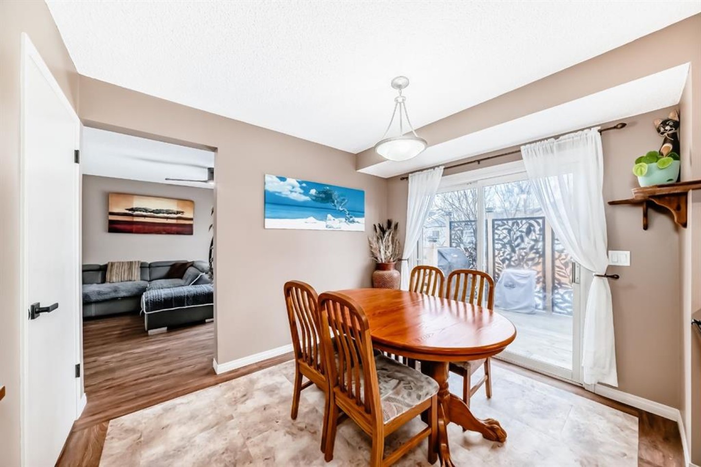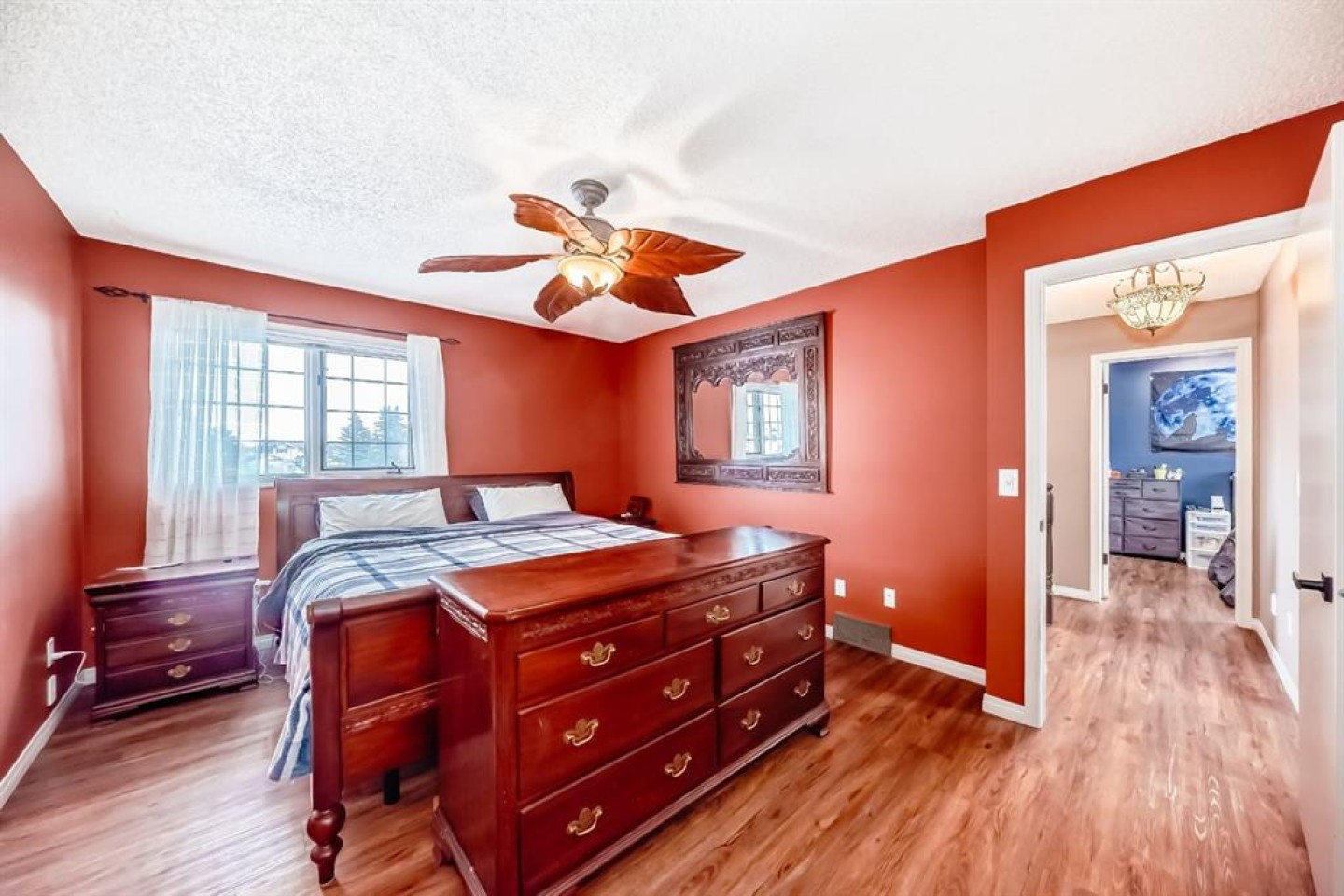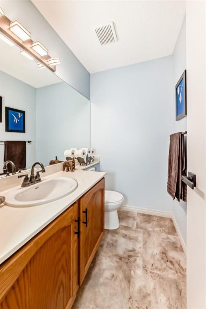 Welcome to this beautifully maintained, fully developed 2-storey home in the sought-after golf course community of Woodside Estates. Thoughtfully suited for young families, retirees, or golf enthusiasts, this home offers 3 bedrooms, 2.5 bathrooms, and a versatile den/office/flex room in the basement, blending comfort, style, and thoughtful updates throughout. Recent improvements include newer LVP and LVT flooring, along with a striking custom rock feature on the stair risers that creates an eye-catching architectural statement as you head upstairs. The main floor is warm and inviting with a cozy gas fireplace, perfect for enjoying morning coffee and east-facing sunrises, plus the convenience of main floor laundry. The kitchen has been refreshed with new stainless steel appliances and updated cabinet hardware, while additional upgrades include new toilets and faucets throughout the house, a hot water tank (2024), and an energy-efficient furnace. The sunny west-facing backyard is designed for relaxation and entertaining, featuring mature landscaping, a new deck, newer fencing, black decorative lattice privacy screening, a natural gas BBQ hookup, a storage shed, and a charming vegetable garden with perennials, including well-established raspberry bushes that add both character and seasonal enjoyment. Additional highlights include a heated double attached garage, a new garage door (October 2025), plumbing for central vacuum, and a low-traffic location. Ideally located just steps from Woodside Golf Course and one street away from Holes 17 and 18, this home is perfect for golf enthusiasts. Families will appreciate the convenient access to nearby schools, including Ralph McCall School (Public K–4), C.W. Perry School (Public Grades 6–9), and Our Lady Queen of Peace School (Catholic K–9). Move-in ready and located in a family-friendly neighbourhood, this Woodside Estates home offers exceptional value and lifestyle, with no HOA fees.
