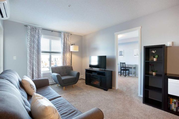 Welcome to this spacious and stylish 2-bedroom + den, 2-bathroom condo located in the vibrant community of Legacy. Offering a highly functional layout with modern finishes throughout, this home is perfect for first-time buyers, downsizers, or investors seeking exceptional value. The open-concept design features a bright living area that flows seamlessly into the contemporary kitchen, complete with sleek cabinetry, stone countertops, and stainless steel appliances. The two bedrooms are thoughtfully positioned on opposite sides of the unit for added privacy, making it ideal for roommates, guests, or working from home. A versatile den provides the perfect space for an office, hobby room, or additional storage. Enjoy the comfort of in-suite laundry and the convenience of a heated underground parking stall. Step outside to your private balcony-an inviting space to unwind and enjoy the community surroundings. Located in one of Calgary's fastest-growing neighbourhoods, this home is just steps from scenic walking paths, ponds, playgrounds, schools, grocery stores, and a wide range of amenities. With quick access to Macleod Trail, Stoney Trail, and major transit routes, getting around the city is effortless. This well-appointed condo offers the perfect blend of lifestyle, comfort, and convenience-an excellent opportunity in the heart of Legacy.