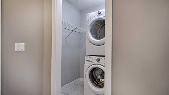 Available Immediately. Top-floor 2-bedroom, 2-bathroom unit in the highly sought-after Auburn Bay Lake Community — a rare opportunity to enjoy true privacy with no neighbours above you. This bright and inviting home features a large east-facing balcony that extends your outdoor seasons and fills the interior with morning light. From the moment you walk in, you’ll appreciate the 9 ft ceilings and abundant natural light that create a spacious, airy atmosphere. The open-concept layout easily accommodates a full dining table and is ideal for both everyday living and entertaining. The kitchen is a chef’s delight, featuring gleaming white cabinetry, stainless steel appliances, stone countertops, a designer tile backsplash, and a generous island perfect for meal prep and casual dining. The primary bedroom is a serene retreat with a walk-in closet and a well-appointed ensuite offering dual sinks and an easy-access shower — ideal for those seeking comfort and convenience while downsizing. The second bedroom is impressively large and positioned on the opposite side of the unit, providing excellent privacy for guests or family members. A full second bathroom with a bathtub and in-suite laundry add to the functionality of this well-designed floor plan. You’ll love the security and convenience of underground heated parking and an additional storage locker. The building’s contemporary architecture and clean design enhance the overall appeal. As an Auburn Bay resident, you’ll enjoy year-round lake access included through HOA fees. The lake offers swimming, fishing, paddleboarding, skating, and a wide range of adult and youth programs. Additional community amenities include tennis courts, picnic shelters, a gymnasium, and even a disc golf course. The location is exceptional — just one block from everyday essentials and fitness options in Auburn Station, and only minutes to Seton’s vibrant Gateway Retail District featuring restaurants, major retailers, Superstore, Cineplex VIP Cinemas, the South Health Campus, YMCA, and the public library. Plus, you’ll appreciate easy access to schools, public transit, and major routes such as 52nd Street, Stoney Trail, and Deerfoot Trail. The Auburn off-leash dog park is also just a short drive away. Don’t miss your chance to own in this vibrant lake community. Book your private showing today and make this stunning top-floor home yours.