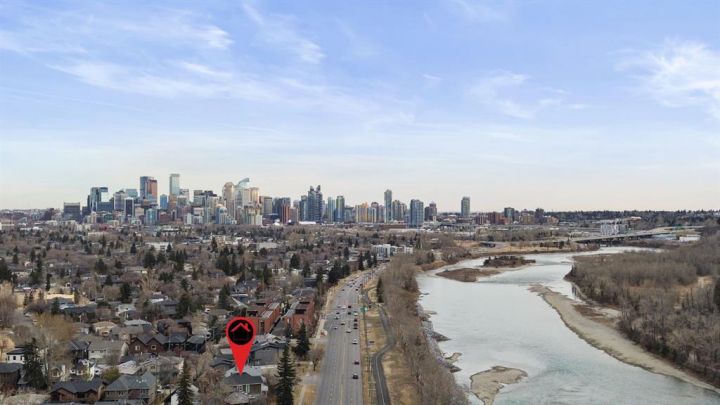 Timeless charm meets unrivaled location in this beautiful turn-of-the-century Parkdale home, perfectly positioned on a coveted 6,781 sq. ft. riverfront lot facing the Bow River. Set on a picturesque, tree-lined street, this character residence blends classic architecture with thoughtful upgrades, creating a warm and welcoming space ideal for families. A charming front porch sets the tone before stepping into the stunning foyer, where original detailing and rich hardwood flooring carry you through the main level. Through elegant French doors, the living room offers a cozy gathering space complete with a gas fireplace. The dedicated dining room is perfect for hosting, while the beautifully updated kitchen features stainless steel appliances and connects seamlessly to a practical mudroom. Upstairs, the home truly shines with four generous bedrooms. The spacious primary retreat has a 4-piece ensuite bathroom and one of the secondary bedrooms captures incredible Bow River views along with access to a private upper-level porch. The upper level also has a secondary 4-piece bathroom, ideal for large families. The lower level provides a comfortable, flexible space—perfect for movie nights, recreation, or a cozy hideaway on winter evenings. Outdoors, the property boasts a spacious front and side yard, offering ample room for kids to play or for gardening enthusiasts. An oversized double detached garage adds convenience and storage options. This exceptional location means you can enjoy the Bow River Pathway network directly across the street, with endless options for biking, running, and scenic river walks. Downtown Calgary is just 10 minutes away, and Kensington Village is a quick 5-minute drive, placing some of the city’s best dining and cafés at your fingertips. Families will appreciate being a short walk to Westmount Charter Elementary School, making everyday life easier.