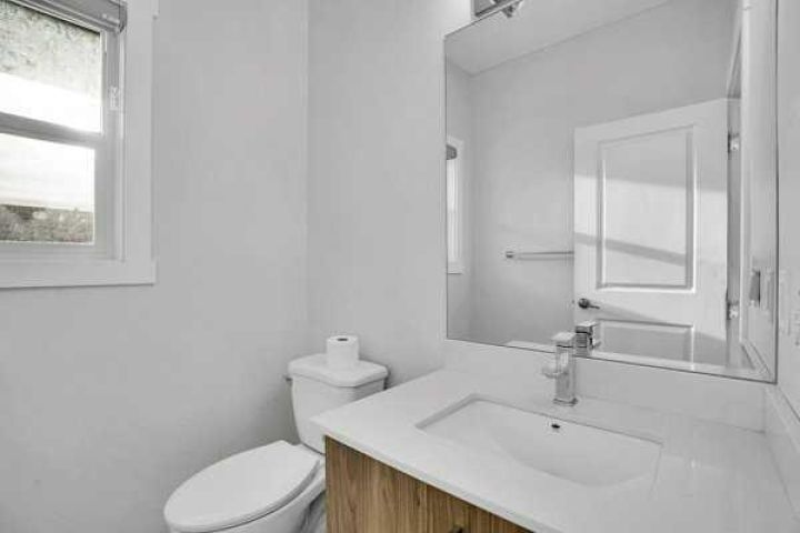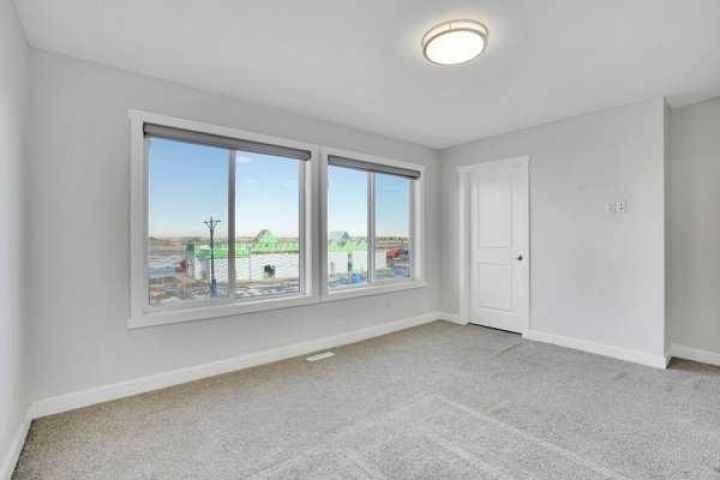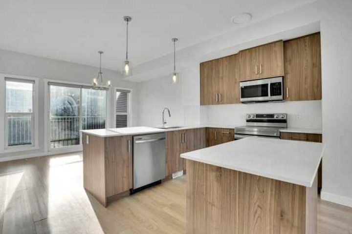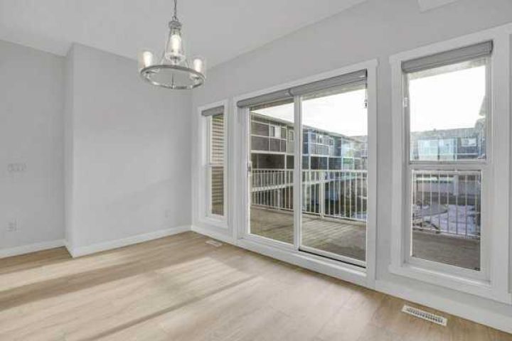 Welcome to this stunning 1,649 sq ft, 3-storey townhome offering 4 bedrooms, 2.5 bathrooms and a bright modern design in an unbeatable location. The main level features a welcoming foyer, a main-floor Den and convenient interior access to the double attached garage. Upstairs, the open-concept living space is filled with natural light and enhanced by high ceilings, showcasing a central kitchen with full-height cabinetry, quartz countertops, stainless steel appliances, a large island and an extended breakfast bar. The dining area opens onto a private balcony with a gas line for BBQs, while the spacious living room offers a TV-ready wall and plenty of room to relax or entertain, all complemented by a 2-piece bath. The upper level includes three sizeable bedrooms, two full bathrooms and upper-level laundry, with the primary suite featuring a walk-in closet and a private 5-piece ensuite with double quartz vanity. A beautifully maintained shared outdoor space enhances the complex, and the location is ideal with quick access to Stoney Trail SE, making commuting to Calgary fast and convenient. The property requires TLC and is being sold as-is
