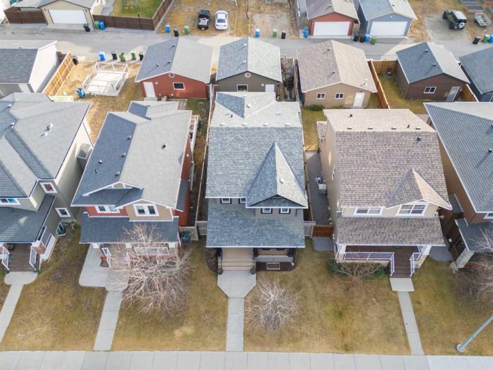 From the moment you arrive at 263 Evanston Way, there’s a sense of ease and possibility - morning walks to the school and green space directly across the street, kids riding bikes out front & a home that feels instantly welcoming. The covered porch opens into a bright foyer that sets the tone for the entire property: warm, functional, and designed for the rhythm of everyday life. A private front office offers a quiet retreat for work or study, while the convenient main-floor laundry and powder room keep routines simple and stress-free. The heart of the home opens up just beyond the hallway, where the newly updated kitchen becomes an immediate showstopper. Quartz countertops gleam beneath soft natural light, while two-toned cabinetry - crisp white uppers paired with striking blue lowers and island - creates a modern, designer feel. SS appliances and a generous pantry make cooking effortless, and the open-concept layout keeps you connected to the dining and living spaces at all times. The dining area easily accommodates family gatherings and weekend brunches, flowing seamlessly into the rear living room where a gas fireplace anchors the space with warmth. From here, large windows draw your eye to the beautifully landscaped backyard - complete with a two-tiered deck, pergola, and plenty of space to relax, entertain, or simply unwind in your own private outdoor haven. The heated detached garage adds year-round practicality you’ll appreciate. Upstairs, the home transitions into a private, restful retreat. The spacious primary suite offers room to breathe, with a calming ensuite featuring both a soaker tub and walk-in shower, plus a generous walk-in closet. Two additional bedrooms featuring newer triple-pane windows provide comfort for family, guests, or a second workspace. A full bathroom and an airy open-to-below landing complete a level designed for balance and comfort. The fully developed basement extends the home’s living potential even further. The expansive rec room is a true multipurpose haven - media space, gym zone, play area, or entertaining lounge - and the wet bar brings a touch of celebration to movie nights and gatherings. A large bedroom and full bathroom create a perfect setup for teens, guests, or extended family. With a new hot water tank, organized utility space, and thoughtful storage, this level is as functional as it is fun. Recent upgrades include new siding, new roof shingles, updated kitchen finishes, & central air conditioning mean you can move in with peace of mind and enjoy the home exactly as it is: warm, stylish, and ready for its next chapter. Altogether, this property delivers more than 2,200 sq ft of beautifully optimized living space across three finished levels. This home is located within the vibrant, family-focused community of Evanston - a neighbourhood known for its welcoming streets, walkable pathways, and thoughtfully planned parks. Come experience the feeling of home - book your private showing today.