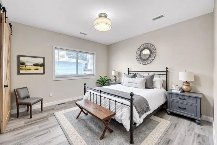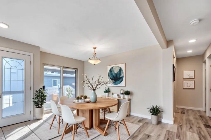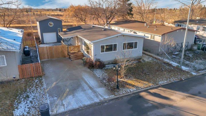 Think you can’t get an updated home with a fenced backyard, detached garage and a lake view in this price range?? Think again - this updated 2 bedroom home is spacious, open and absolutely bathed in natural light. The main living area is totally open concept with huge windows and there is newer luxury vinyl plank flooring throughout the whole home. You’ll feel inspired in this well equipped kitchen complete with stainless steel appliances, granite counters, cheery backsplash and a center island with extra seating. The 2 bedrooms are located at the end of the hall. The primary has popular sliding barn doors on the closet for a cozy farmhouse feel. The other bedroom is perfectly suited as a kids room or maybe a home office. A 3 pc bath with nice sized walk in shower is conveniently located close to the bedrooms but also easily accessed from the main living area for guests. The laundry room is nicely tucked to the side and offers an additional exterior door. Step out onto your side deck from the dining room where you’ll enjoy a view of Gray’s Lake. A fully fenced back yard comes with a covered patio area, 2 storage sheds and plenty of room for kids and pets to play. There is plenty of parking and a double gate leads to the single detached garage allowing for storage for a small RV if needed. The ceiling in the garage is super high creating the opportunity to add mezzanine storage. This terrific home is ideally located close to Brentwood Elementary School as well as the Strathmore Family Centre Arena and is just steps from Gray’s Park and its picturesque walking paths. If you’re looking for an affordable & adorable home in Strathmore don’t miss out on this little gem!