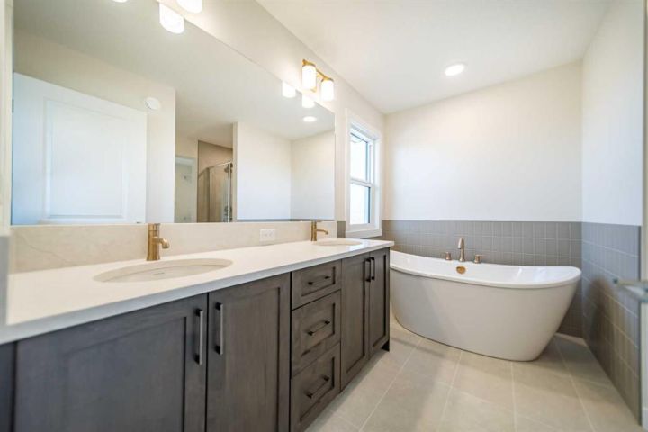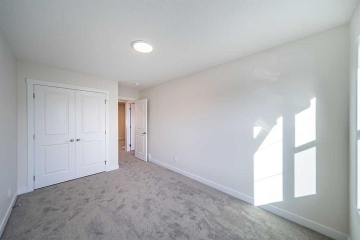 This stunning, brand-new home by award-winning Brookfield Residential is officially move-in ready and located in the highly sought-after community of Chinook Gate in Airdrie. Thoughtfully designed, this Rundle 24 model offers exceptional living with two spacious living areas, 3 bedrooms, 2.5 bathrooms, and an undeveloped basement with ample room for a future rec area, bedroom, and bathroom (with rough-ins + side entrance already in place). At the heart of the home sits a chef-inspired kitchen featuring a built-in oven range hood and microwave, and a slide-in gas range. A generous walkthrough pantry seamlessly connects the kitchen to the mudroom and the double attached garage, enhancing everyday convenience. Open to both the dining area and main living space, this kitchen is designed for effortless flow -ideal for family living and entertaining alike. A wall of west-facing windows along the back of the home fills the main floor with natural light, while the dining area’s patio doors provide direct access to the backyard. A cozy electric fireplace adds warmth and comfort to the living room, creating the perfect atmosphere for winter evenings. Beautiful natural wood railings with iron spindles lead to the upper level, where a central bonus room separates the luxurious primary suite from the secondary bedrooms, ensuring both privacy and functionality. The spacious primary bedroom boasts a spa-inspired 5-piece ensuite complete with dual sinks, a soaker tub, a walk-in shower, and an impressive walk-in closet. Two additional well-sized bedrooms, a full bathroom, a large linen closet, and a dedicated laundry room complete the upper floor. The basement, offering nearly 800 sq. ft., is a blank canvas ready for your personal vision - whether that’s a home theatre, gym, additional bedrooms, or all of the above and the bathroom rough-ins are already in place. Situated on a bright and sunny lot spanning nearly 4,000 ft2 in size with ideal west backyard exposure, this is the perfect home both inside and out! With both Builder Warranty and Alberta New Home Warranty, you can purchase with confidence. Fully finished, beautifully designed, and move-in ready, this exceptional home in Chinook Gate is perfect for a growing family looking for comfort, style, and a vibrant community.