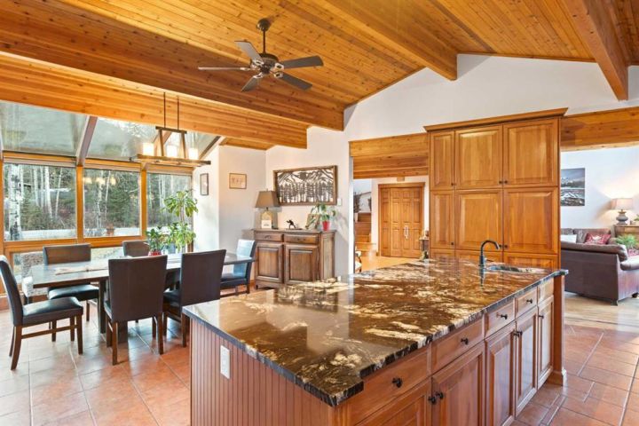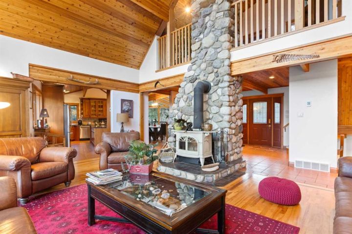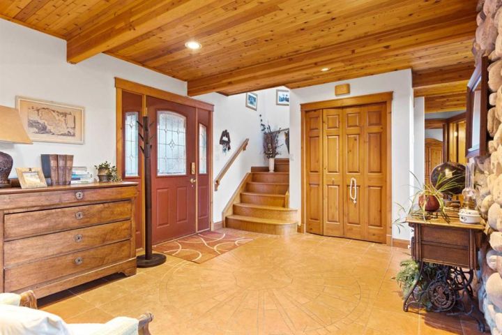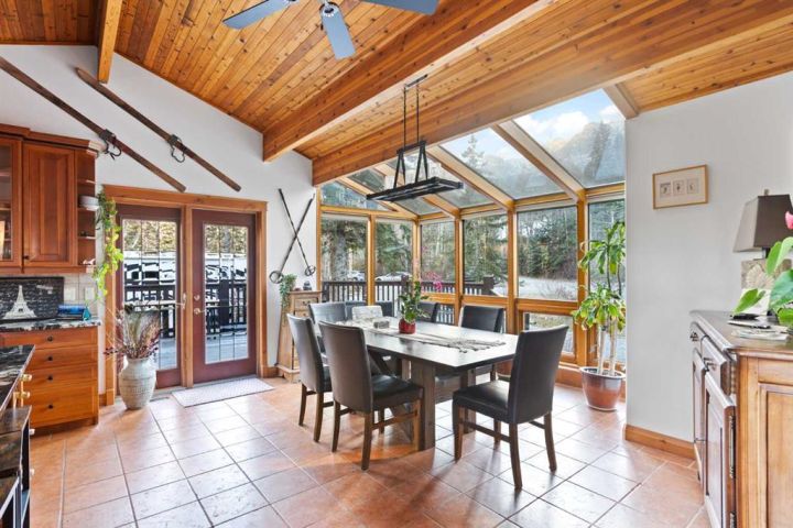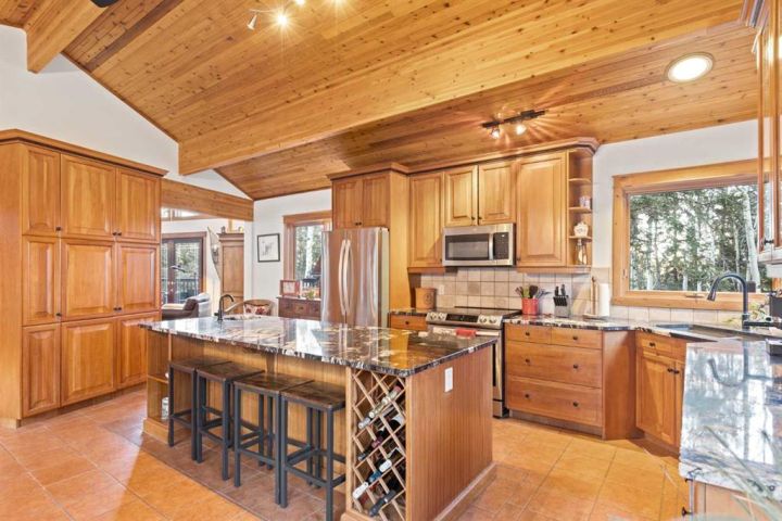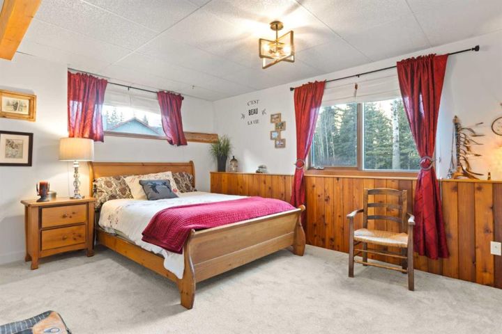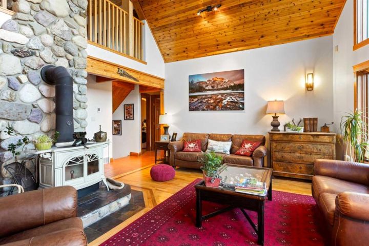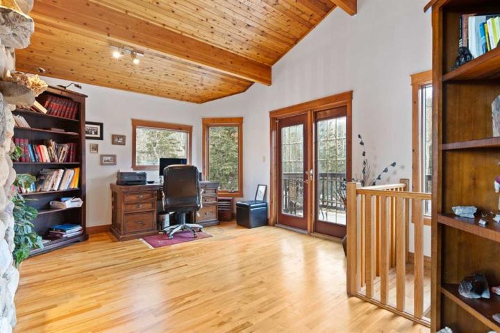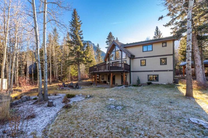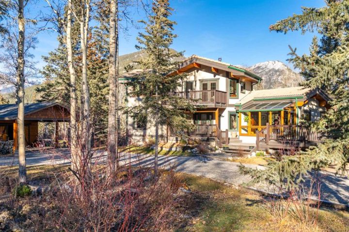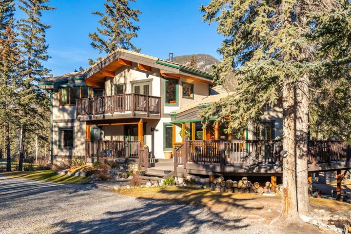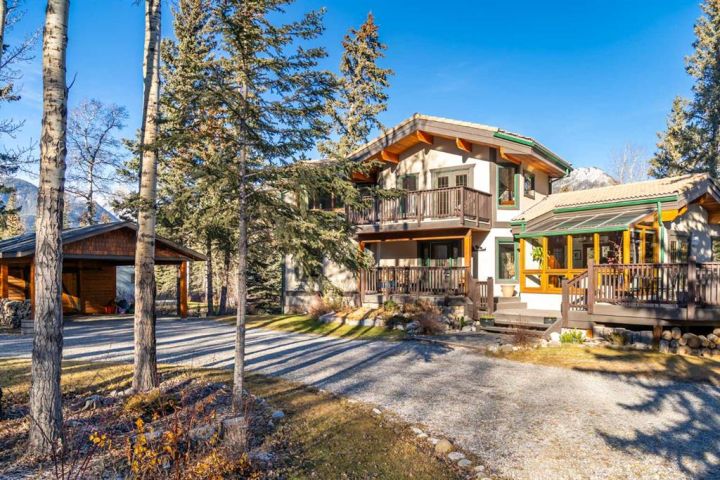 This half-acre walkout estate sits in the quiet hamlet of Lac des Arcs, framed by uninterrupted views of the Canadian Rockies. With over 3,400 sq ft of developed living space, it’s a warm, inviting mountain retreat built for comfort and connection to the outdoors. The bright open main floor features maple hardwood, vaulted ceilings, a welcoming living room with a custom river-rock fireplace, and a chef-inspired kitchen with cherry wood cabinetry and a massive 9-ft island. The attached solarium dining room offers incredible light and mountain views through its floor-to-ceiling windows. A spacious main-floor primary suite adds everyday convenience with its own 4-piece ensuite, generous windows, and nearby laundry. Upstairs, a second large primary suite includes a walk-in closet, full ensuite, and access to a broad balcony shared with the loft. The fully developed walkout level is ideal for guests, teens, or multigenerational living, complete with a second kitchen, huge recreation room, two additional bedrooms, a full bath, and plenty of storage. Enjoy the scenery from nearly every room or step onto the wrap-around deck with multiple access points. All of this sits steps from trails, climbing, the Bow River, and Grotto Canyon, with Canmore only 10–15 minutes away. A rare blend of space, privacy, and true mountain living.