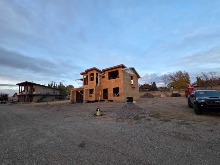 ELIGIBLE FOR FIRST HOME BUYERS GST REBATE. A stunning home by Alpine Boutique Builders where every detail has been thoughtfully woven into a layout that feels natural, breezy, and beautifully connected from top to bottom. The main floor welcomes you with vaulted ceilings that lift the space and draw in the light, creating a warm, coastal feel the moment you step inside. The great room’s electric fireplace adds a rustic charm, making it a cozy gathering spot after a day by the water and allows you to step out to your front or back deck with incredible views. The kitchen flows seamlessly from here, designed with both style and function in mind—a seated island at the center, a slide-in gas range, a 36-inch wide fridge, a plenty of storage, and a charming coffee bar complete with its own pot filler. It’s a space meant for easy mornings, casual conversation, and the rhythm of lakeside living. The primary suite continues that sense of relaxation, offering a spa-like retreat with dual sinks and a flush base shower that feels both modern and calming. Two additional bedrooms on this level provide welcoming spaces for family or guests, all connected by effortless movement through the home. Large windows, abundant pot lighting, and smooth access to the covered deck and sundeck make indoor–outdoor living part of the everyday experience. Even outside, convenience is built in with hot and cold, water and gas hookups on all decks and driveway. The lower level extends that same inviting flow with two more spacious bedrooms ( that could be a den or office) give this level a relaxed, flexible feel, offering room for guests, recreation, or quiet retreat. A dedicated laundry room with a sink, thoughtful storage areas, and mechanical rooms tucked neatly away make day-to-day living smooth and organized. Comfort is built into the core of the home. An air exchanger keeps fresh air circulating throughout every room, including the bathrooms. The entire lower level, including the garage, is roughed in for three-zone in-floor heating, ready to keep things warm through the colder months. A 97% efficient furnace with a stainless steel core, A/C rough-ins, and on-demand hot water ensure year-round comfort and efficiency. The oversized garage is A DREAM and designed for true lake life, so spacious, with room for a pontoon or wakeboard boat and direct access to the lower level. It’s also prepared for the practicalities that make living here easy: a radon system, sink rough-in with power for a possible dog wash, smart-home monitoring breakers, a 30-amp exterior plug for recreational equipment, 150-amp service, and full generator rough-ins for backup power whenever needed. From the vaulted main-floor living spaces to the welcoming lower level and outdoor retreats, the entire home is crafted for comfort, connection, and the relaxed charm of lakeside living—every feature chosen to make life at Little Bow Resort as effortless as it is beautiful.