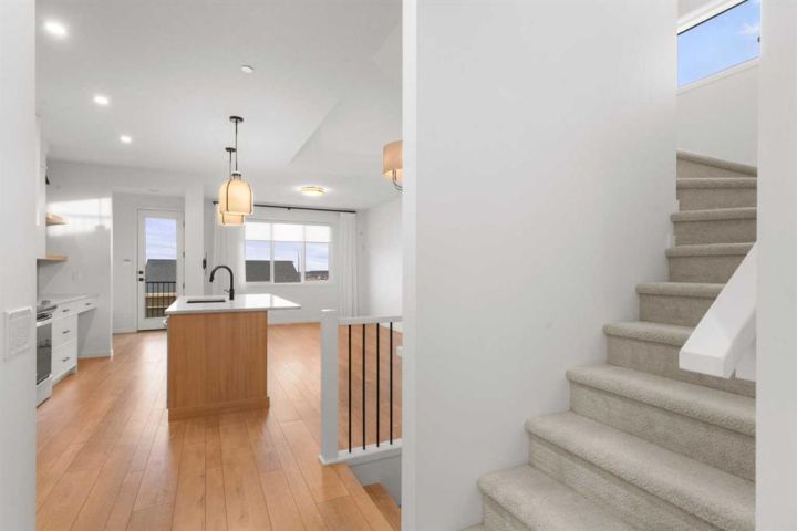 From the moment you step inside this former Cedarglen show home, you feel it - that sense of ease, of space, of possibility. The kind of home where everyone can live fully without getting in each other’s way, yet still come together in the moments that matter. Set in the vibrant community of Livingston, known for its welcoming energy, incredible HOA amenities, and family-friendly design, this property gives you not just a home, but a lifestyle people genuinely fall in love with. The main floor opens with warmth and intention. Sunlight pours across the two-toned white and light oak kitchen, where stainless steel appliances, upgraded backsplash, and black hardware create a clean, modern palette. The warm luxury vinyl plank floors carry that tone throughout, guiding you seamlessly into the dining and rear living room - an inviting space that feels made for movie nights, slow Sundays, and effortless entertaining. Just off the foyer, a front bedroom with a full bath offers rare flexibility: a quiet office, a private suite for guests, or a thoughtful setup for multigenerational living. Upstairs, the primary suite feels like a calm retreat, complete with an ensuite featuring dual sinks, upgraded tile in the walk-in shower and a generous walk-in closet completes the space. Two additional bedrooms give everyone their own corner of the home, while the upper-floor laundry and airy open-to-below design add daily convenience and architectural beauty. It’s a layout that simply makes sense - spacious, intuitive, and easy to live in. Then comes the showstopper: the third floor, an entire level dedicated to living large. This massive bonus room, complete with its own wet bar and a private powder room, is where life truly expands. Whether it becomes your media sanctuary, kids’ zone, gym, or creative space, it all opens onto a covered balcony that feels like your own rooftop escape. Morning coffee, evening cocktails, long summer nights - this is where memories happen. An unfinished basement offers more than 800 sq ft to grow into - future bedrooms, a rec room, or the home gym you’ve dreamed about. With a side entrance, the possibilities feel endless. Outside you’ll find Gemstone exterior lighting, Central AC, and a double detached garage to keep your cars warm all winter long. Livingston offers everything families love: beautiful parks, the state-of-the-art HOA hub, community events that make neighbours feel like friends, and quick access to major routes. It’s a place where kids bike freely, people connect, and life feels just a little bit easier. This is where comfort meets function, where smart design meets style, and where your next chapter can unfold with ease. Come see why Livingston homeowners never want to leave and why this former show home is the perfect place to start your story. *Some photos are virtually staged*