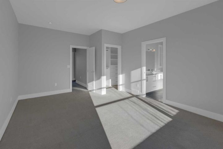 Welcome to Richmond/Knob Hill! This beautifully finished home offers 4 bedrooms, 3.5 bathrooms, a thoughtful layout, and a fully developed basement—truly a standout property. The bright, open-concept main floor features 9-foot ceilings, hardwood floors, and oversized windows that fill the space with natural light. The tiled front entry includes a spacious closet with French doors and custom organizers (no wire shelving in this house!), leading into a generous living room perfect for entertaining or settling in for a movie night. The chef-inspired kitchen boasts quartz countertops, a large island, ceiling-height cabinetry, a gas cooktop, built-in wall oven and microwave, and a pantry with custom shelving. It flows seamlessly into the dining area, which comfortably seats eight and is anchored by a gas fireplace with built-ins and a south-facing window. A discreetly positioned 2-piece powder room and a mud room with French door closet and additional built-ins complete the main level. Upstairs, an extra-wide staircase and skylight create an inviting transition to the second floor, where you’ll find 9-foot ceilings and an ideal layout. The private primary suite overlooks the backyard and includes a spacious 5-piece ensuite with dual vanities, a deep soaker tub, an oversized shower, and a dreamy walk-in closet with extensive built-ins. Two additional large bedrooms sit at the opposite end of the home, each with built-in closets, large windows, and a shared balcony complete with soffit lighting. A 4-piece bathroom with quartz countertop and a dedicated laundry room with soft-close cabinetry complete this level. The basement feels anything but below-grade, thanks to large windows and cozy in-floor heat. The rec room offers a great space for family time and includes a well-appointed wet bar. A fourth bedroom with two windows and a huge walk-in closet sits next to a full 4-piece bathroom. Additional highlights include a linen closet, ample storage, and an exceptionally tidy utility room. Outside, the sunny south facing backyard features a lovely deck and leads to a detached double garage (insulated and drywalled). *BONUS - central vac rough-in, sump pump, freshly painted, professionally cleaned and move-in ready!