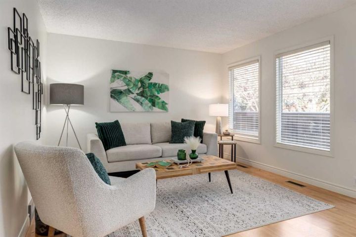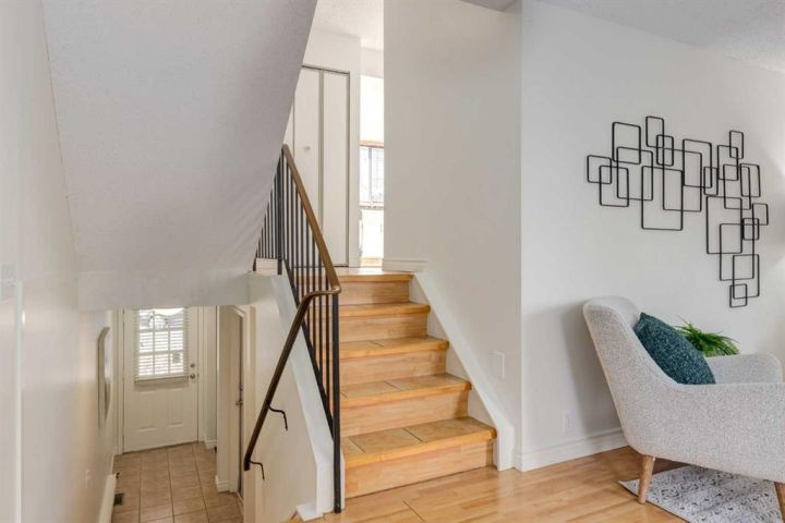 Welcome to Point McKay—an inner-city villa community that feels like a quiet retreat while offering unbeatable access to the city. Steps from the Bow River, parks, and pathways—including Edworthy Park and the Douglas Fir Trail—this serene, tree-lined enclave delivers a genuine “mountain-villa” vibe right in Calgary’s core. This well-priced townhome features a fenced yard backing onto a spacious greenbelt reserve, creating privacy and a wonderful connection to the community’s park-like setting. The front-drive single attached garage provides secure indoor parking—especially appreciated as winter approaches—and the full unfinished basement offers excellent storage or future development potential. Inside, the unique five-level split floorplan showcases a bright living room with soaring ceilings and direct access to the garden. The upper-level kitchen enjoys sunny south exposure, original cabinetry in great condition, newer appliances, a breakfast nook, and a dedicated dining area. A convenient half bath completes this level. Upstairs, a cozy bonus room and second bedroom create great separation of space, while the top-floor primary bedroom features south-facing windows, a walk-in closet, and access to the full bathroom. A neutral palette—white walls, clean carpets, and maple-tone laminate flooring—makes this home truly move-in ready. All of this in an unbeatable location with quick access to the Foothills Medical Centre, University of Calgary, and the University District, plus an easy bike ride to downtown and swift routes west for weekend mountain adventures.
