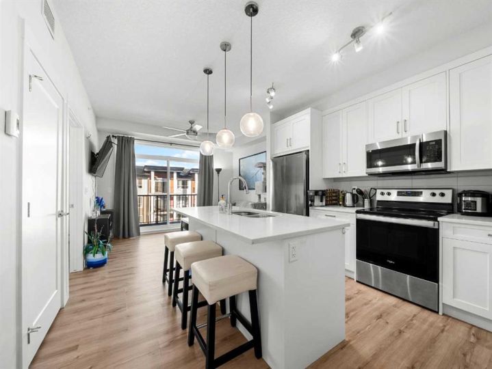 2023 Buit, Top Floor, bright, modern, and perfectly located, this 2-bedroom condo in Walden offers incredible value at just $259,900! Situated in the well-managed, elevator-equipped building, this home features nearly 530 sq. ft. of open-concept living space, a titled parking stall, a private storage locker, and a spacious balcony with a natural gas hookup where BBQs are permitted. Inside, the unit features a practical layout with a welcoming entryway, a bright living area, and a modern kitchen equipped with a spacious island, quartz countertops, stainless steel appliances, and ample cabinet space. The bedroom with a built-in closet, while the den offers the perfect spot for a home office or added storage. Large windows fill the home with natural light, creating a comfortable and inviting atmosphere. No carpet. Upgraded flooring - LVP all throughout. This pet-friendly building is located in Walden, one of Calgary’s most peaceful and nature-focused communities. You’ll love the tree-lined streets, green spaces, walking paths, and nearby natural wetland. Dog owners will appreciate close proximity to Fish Creek Park, Wolf Willow Dog Park, and other outdoor spaces. Everyday convenience is unmatched with easy access to Gates of Walden, Township, Shawnessy Village, grocery stores, restaurants, banks, and major retailers. Commuting is seamless with quick connections to Macleod Trail and nearby transit routes. Additional perks include common bike parking, secured underground storage, and a dedicated parking stall just steps from the building. Low condo fees of $242.57 per month include heat, water, building insurance, snow and garbage removal, and contributions to the reserve fund, offering predictable monthly costs and worry-free living. Perfect for first-time buyers, downsizers, or investors seeking a low-maintenance property in a vibrant and growing community.