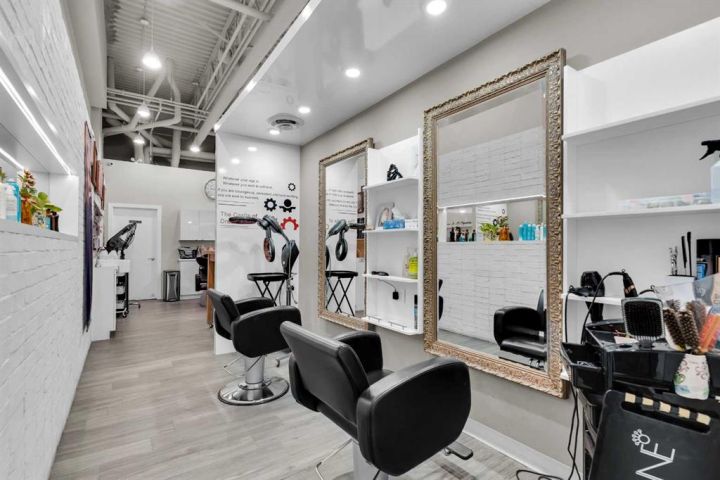 A beautifully designed and fully built-out hair salon located in the heart of South Calgary’s bustling commercial corridor at 9737 Macleod Trail SW. Situated in the highly visible Southland Crossing Plaza, this turnkey salon offers unmatched exposure and convenience, surrounded by major anchor tenants, dense residential towers, and strong daily foot and vehicle traffic. Positioned directly across from Southcentre Mall and just steps away from the C-Train Station, the location provides exceptional access for both clients and staff. Aerial views showcase its premium positioning along Macleod Trail with signage visibility that captures thousands of daily commuters. The exterior features a vibrant, welcoming storefront framed by established neighbouring businesses, offering excellent walk-up accessibility and surface parking. Inside, the salon is thoughtfully designed with a modern aesthetic—high ceilings, custom lighting, sleek flooring, and a bright, welcoming reception area. Functional layout includes multiple workstations, a stylish product display, and an inviting atmosphere that speaks to both elegance and efficiency. Whether you're an established stylist looking to elevate your brand or an investor seeking a high-exposure retail opportunity, this space is ready to impress. Its meticulous buildout and unbeatable location make it an exceptional offering in one of Calgary’s most vibrant commercial hubs.