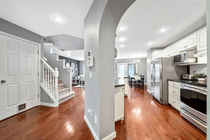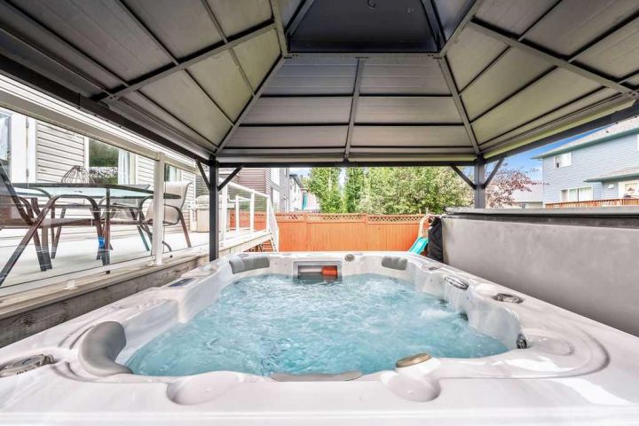 OPEN HOUSE- Sunday, November 23rd, from 1:00-3:00 pm- Perfectly positioned on a tranquil street, this home delivers a fresh blend of modern updates and timeless comfort. Fresh BRAND-NEW CARPET THROUGHOUT, sets the tone the moment you step inside, enhancing the warm natural light and thoughtful architectural details that make each room feel inviting. The bright white kitchen features stainless steel appliances and strikes the perfect balance between open flow and subtle separation thanks to its elegant archway design. The adjoining dining area easily hosts family gatherings, while the cozy living room—anchored by a gas fireplace—creates an ideal space to unwind. Step outside to a private backyard retreat designed for every season. A large composite deck, a lower deck with a hot tub (2021), and a fire pit area offer endless options for relaxation and entertaining. Mature crabapple and pear trees frame the yard with natural beauty and privacy. Upstairs, open railings and an airy landing lead to a spacious primary bedroom with a walk-in closet and private ensuite featuring both a soaking tub and separate shower. Two additional bedrooms provide versatility for children, guests, or office space, and the upper-level laundry adds everyday convenience. The lower level is drywalled and ready for your finishing touches, giving you the freedom to create additional living space tailored to your needs. A double attached garage ensures comfort during the winter months. Major updates—including new siding (2022) and new shingles (2022)—offer peace of mind for years ahead. Close to schools, shopping, parks, playgrounds, walking paths, Spruce Meadows, and even a nearby pond where kids can feed the ducks, this location is hard to beat. With quick access to Stoney Trail, commuting is simple and stress-free. This one truly checks all the boxes for family living!