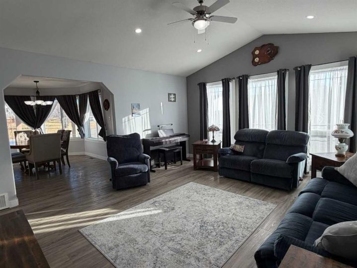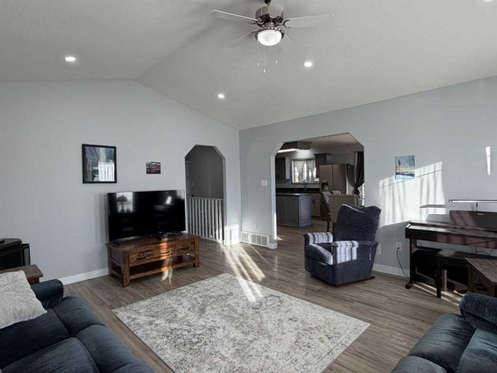 Step into this fully developed bungalow on a beautifully landscaped corner lot, complete with a wrap-around veranda and great curb appeal. This recently renovated 1,360 sq.ft. home offers an inviting floor plan with modern updates throughout and an attached heated double garage. Inside, you'll find a stylish kitchen featuring a centre island, built-in desk, and plenty of workspace. The dining area is surrounded by a wall of windows that fill the space with natural light and open onto a covered deck, perfect for morning coffee. The living room is warm and welcoming with its vaulted ceiling, large windows, and cozy gas fireplace. The main floor offers two bedrooms, including a spacious primary suite with a beautifully updated ensuite featuring a brand-new tile and glass shower. You’ll find plenty of storage throughout this level, along with a full bathroom for added convenience. A main-floor laundry room with custom shelving keeps everything organized, and the front entry provides direct access to the heated garage. The renovated basement is bright and airy, offering a second living room, a dedicated theatre room, two generous bedrooms, and an office/flex space. A beautifully finished full bathroom completes the lower level. Major upgrades include a new high-efficiency furnace, Navien on-demand hot water system, updated plumbing, new flooring, and fresh paint throughout. Shingles were replaced in 2017. Outside, enjoy a tidy yard, mature landscaping, and two garden sheds for additional storage. This property is truly turn-key and ready for you to move in and enjoy.