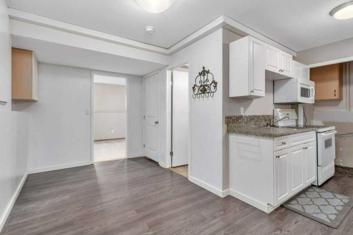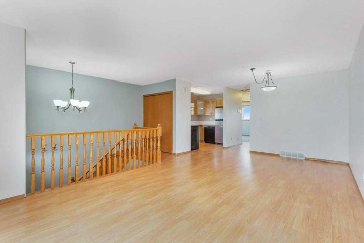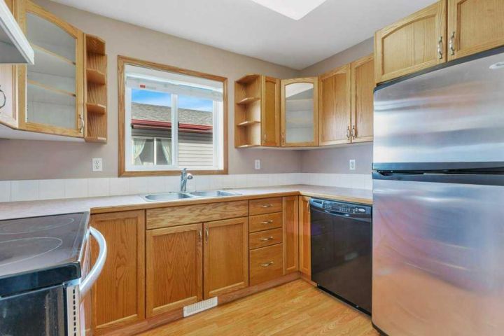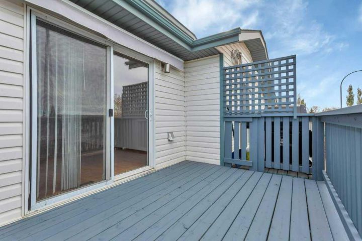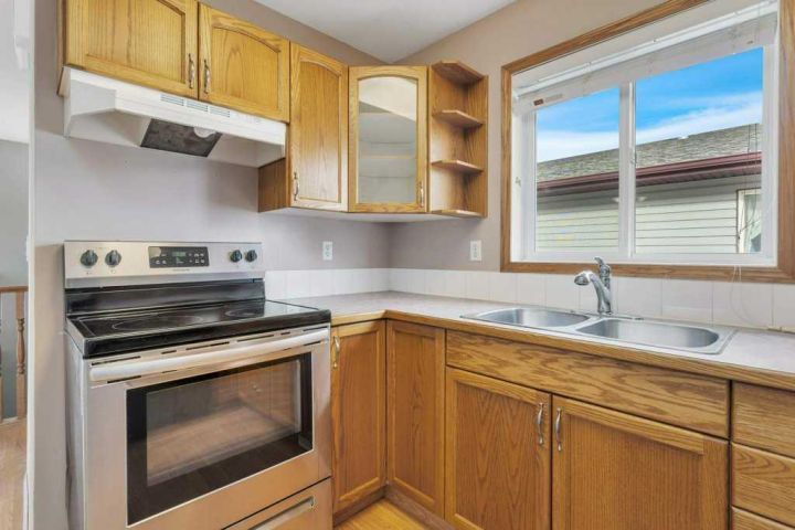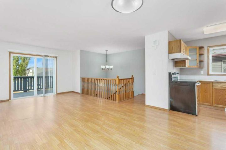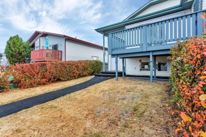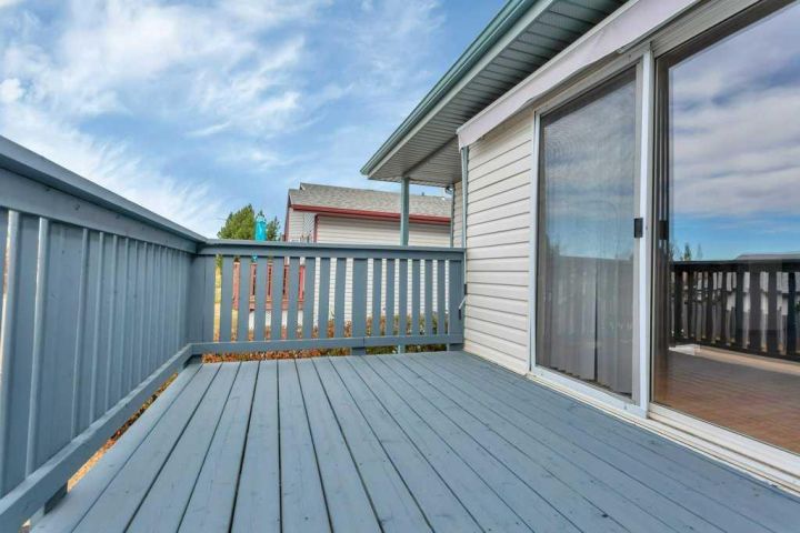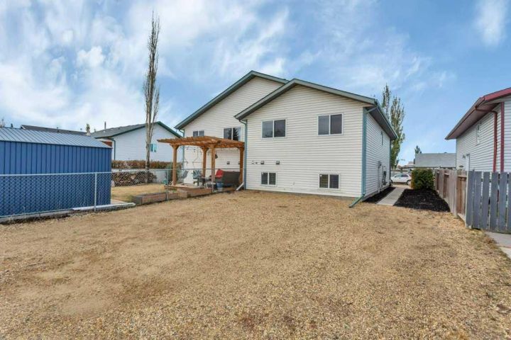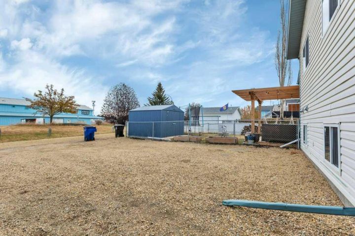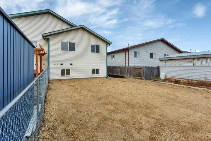 MOVE IN READY HALF DUPLEX IN BLACKFALDS. Excellent starter home or revenue potential here. You'll appreciate the neutral paint colors throughout with a bright open concept floor plan. The functional kitchen offers all appliances, ample cabinet & counter space, and a window above the sink for additional light. Enjoy the spacious living & dining space with large sliding patio doors to the west exposed deck. Full four piece bathroom and two bedrooms complete the main floor. The lower level is completed and features a convenient kitchenette, extra large bedroom, four piece bath and roomy family room. East exposed back yard is low maintenance with a large gravel parking pad which allows for multiple vehicles to park and a small RV or trailer. Recent updates include shingles in 2023 and recycled rubber on the front sidewalk and steps. This a convenient location with just a short walk to all downtown amenities, hockey arena and the Abbey Center.