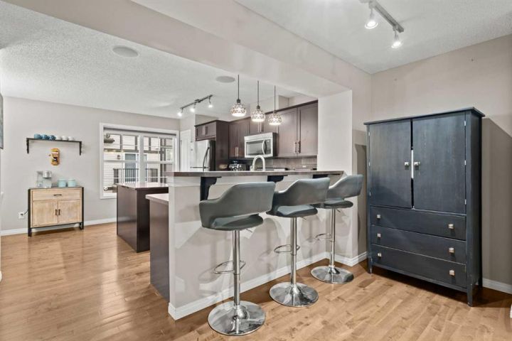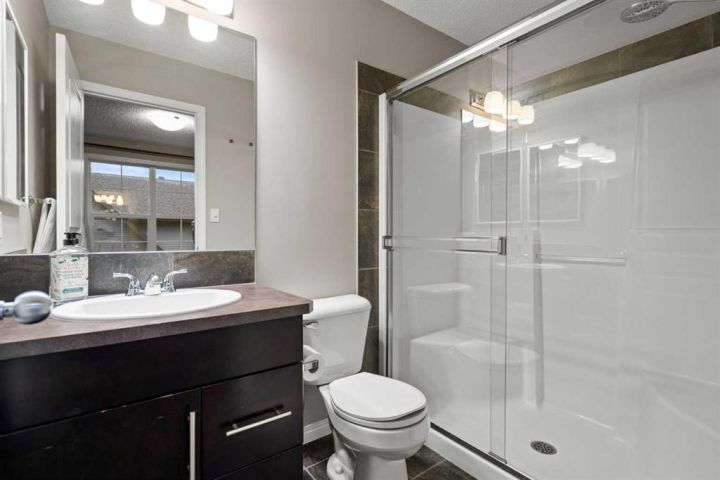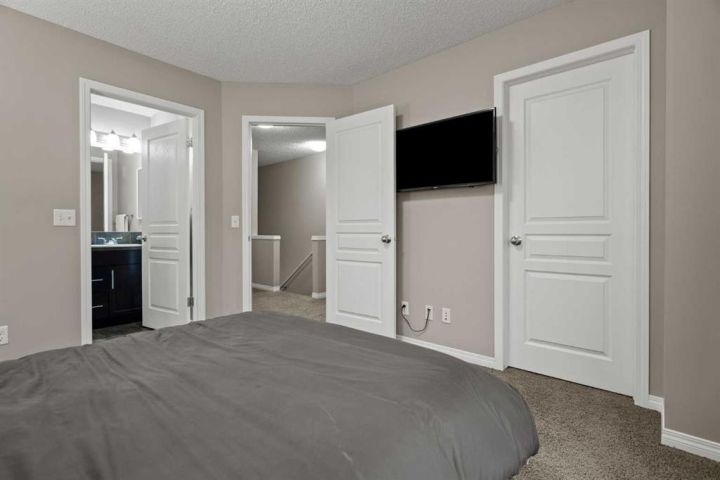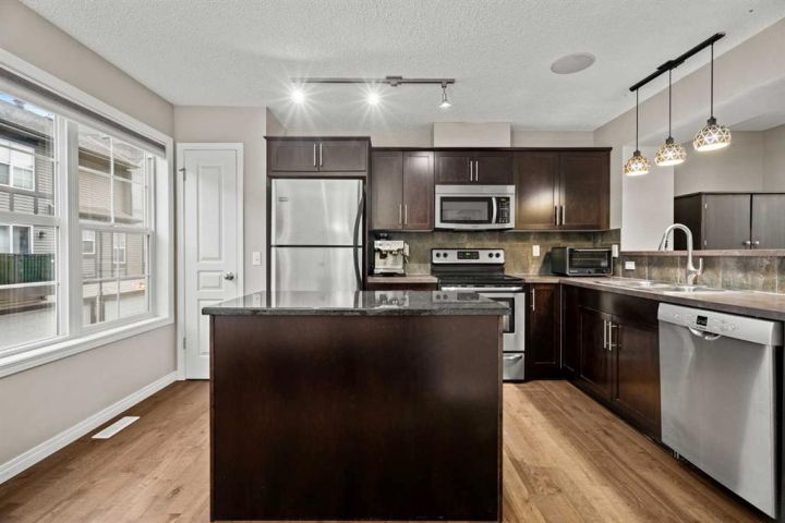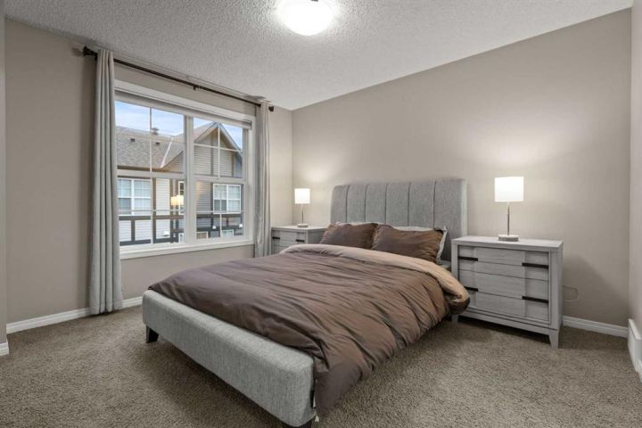 Welcome to this bright and thoughtfully designed 2-bedroom, 2.5-bath townhouse in the vibrant community of New Brighton! Featuring a fantastic dual-primary suite layout, this home is perfect for families, roommates, or anyone looking for a balance of privacy and comfort. Step inside through the inviting tiled foyer and be greeted by an open-concept main floor that’s bright, airy, and perfect for everyday living. The spacious living, dining, and kitchen areas flow seamlessly together, offering room for a formal dining table as well as a cozy breakfast nook for casual meals. The kitchen is a true highlight, featuring a central island with granite countertops, a sit-up breakfast bar, a pantry for extra storage, and stainless steel appliances, making it ideal for both cooking and entertaining. A convenient 2-piece powder room completes this level. Upstairs, a practical computer nook provides the perfect spot for working from home, studying, or hobbies. Both bedrooms are generously sized primary suites, each with large walk-in closets and private ensuites. One ensuite offers a 3-piece layout with a stand-up shower, while the other features a tub-shower combination, giving everyone their own space to relax and unwind. The basement provides ample storage space, laundry facilities, and direct access to the double attached garage, adding both convenience and functionality to your daily routine. Living in New Brighton means enjoying a community designed for modern family life. You’ll have easy access to excellent schools, nearby shopping, and an abundance of parks and pathways perfect for walks, bike rides, and outdoor recreation. Commuting is simple with quick access to 130 Avenue, Deerfoot Trail, and Stoney Trail, connecting you to all areas of Calgary in minutes. This home perfectly blends thoughtful design, functional living spaces, and a lifestyle-focused location. Whether you’re enjoying meals in the open main floor, unwinding in your private ensuite, or exploring the nearby parks and community amenities, this townhouse offers everything you need for comfortable, convenient living in one of Calgary’s most desirable neighborhoods.
