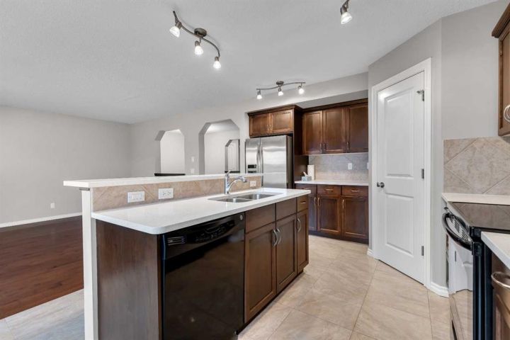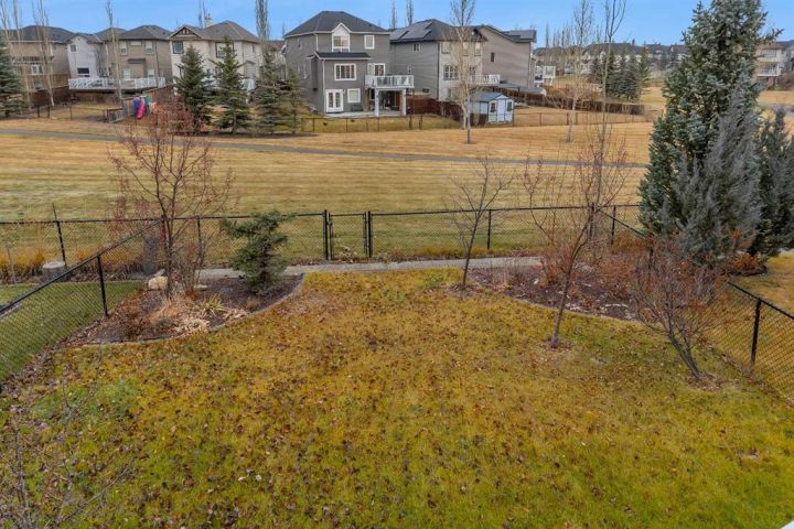 Welcome to this stunning, fully finished 2-storey walkout backing onto a tranquil walking path, green space, and a beautiful pond. Tucked away on a quiet cul-de-sac, this home is truly a must-see! Offering over 2,800 sq. ft. of developed living space, exceptional interior finishings, and immaculate pride of ownership, this property stands out from the rest. As you enter, you’ll be greeted by gleaming hardwood floors, 9-ft ceilings, fresh paint, and an expansive open floor plan. The main level features a formal dining room and a bright living room with a cozy corner gas fireplace. Large windows capture serene views of the pond and lush green space, filling the home with natural light. The beautifully updated kitchen includes a center island with quartz countertops, stainless steel appliances, maple cabinetry, a corner pantry, and a spacious bumped-out eating nook. From here, step through the patio door onto the massive full-length deck complete with aluminum railing an ideal spot to enjoy morning coffee or evening sunsets with exceptional privacy and picturesque views. The upper level features a generous bonus room, a luxurious primary retreat with a walk-in closet and full ensuite, along with two additional bedrooms and another full bathroom. The fully finished walkout basement expands your living space with a large rec/family/games area, a wet bar, a second cozy fireplace, a fourth bedroom, and a full bathroom perfect for guests or extended family. Huge beautifully landscaped backyard along with a storage shed for added convenience. An oversized double attached garage completes this exceptional home. Located close to schools, transit, amenities, and the South Health Campus, this property offers the perfect blend of comfort, style, and convenience. This home truly shows spectacular—don’t miss your chance to view it!