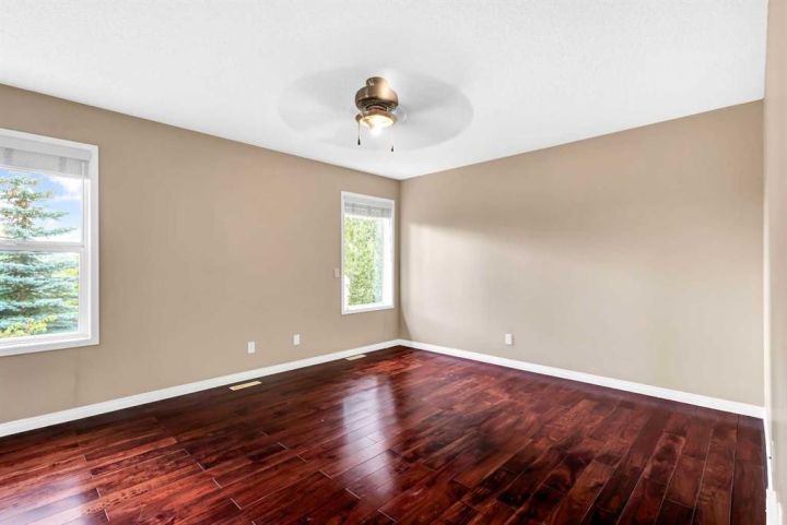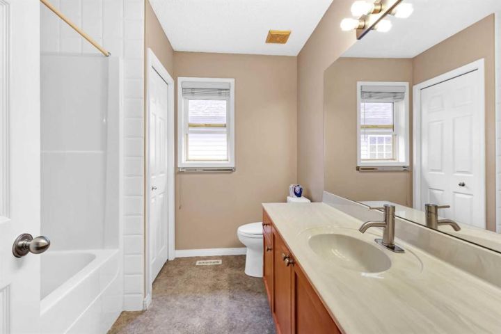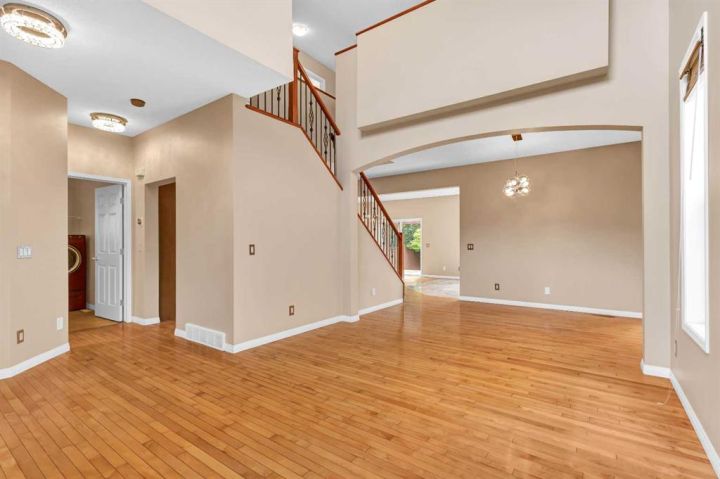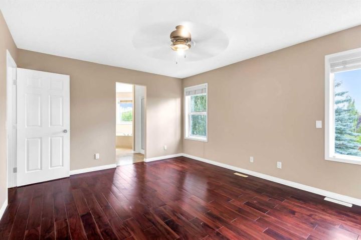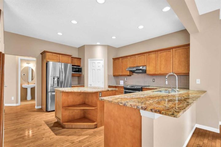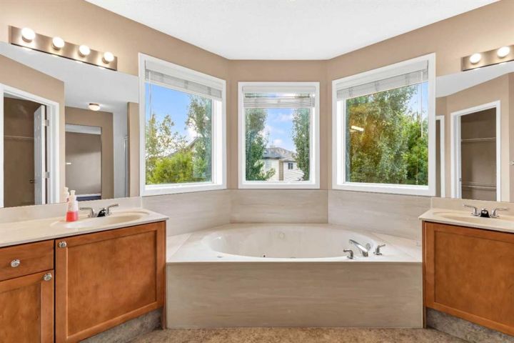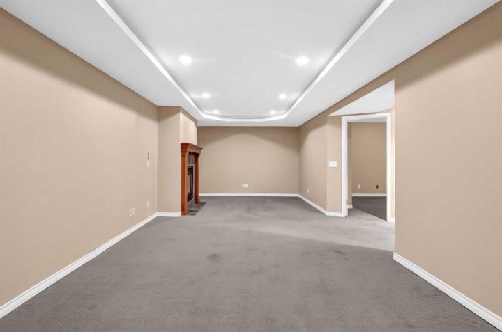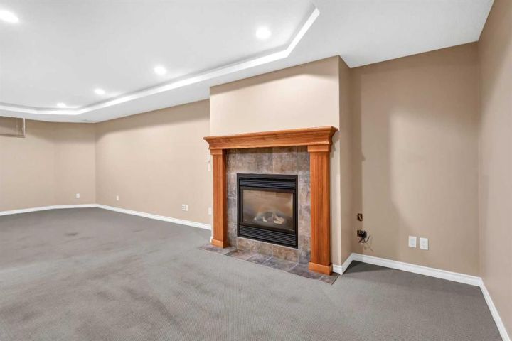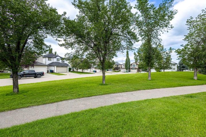 NEW PRICE FOR YOUR NEW HOME. A Rare Find: Elegant Family Home Across from the Park Nestled on a quiet crescent in one of the city’s most desirable neighborhoods, this fully developed residence combines timeless design with thoughtful updates. Facing a wide stretch of green space and offering a west-facing backyard, the home captures both natural beauty and everyday convenience. From the moment you step inside, the meticulous care of this property is evident. Maple hardwood floors flow through the main level, complemented by soaring 9-foot and vaulted ceilings in the living room. A wall of maple cabinetry anchors the bright, open kitchen, enhanced by generous pot lighting, a central island with a sit-up counter, and a corner pantry. The maple and iron railings lend a refined architectural detail, while two fireplaces—each equipped with thermostats and fans—add warmth and comfort. Upstairs, three generously sized bedrooms await. The primary suite offers a tranquil retreat, complete with a ceiling fan and a spa-like five-piece ensuite featuring a jetted soaker tub. The lower level extends the living space with a large family room, fully wired for home theatre, along with a fourth bedroom and full bath—perfect for guests or teenagers seeking their own corner of the home. Every detail has been thoughtfully considered. Custom window coverings remain with the property, and even the storage shelving has been designed to stay. Outdoors, the backyard is a private haven: a cedar deck with pergola, a stamped concrete patio, and mature trees framed by a cedar fence. Two exterior water faucets make garden care effortless. Recent upgrades bring peace of mind, including a new roof (2020), siding (2021), and fencing (2019). Granite countertops were added to the kitchen in 2010, tile flooring refreshed the living room in 2018, and the entire house has been freshly painted and professionally cleaned. Air conditioning is included in as-is condition. With its exceptional location, elegant features, and list of upgrades, this home represents a rare opportunity to enjoy both comfort and community—just steps from the park and surrounded by the beauty of mature landscaping.