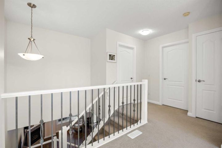 **OPEN HOUSE this SAT, Nov 22nd at 2-4PM** Welcome to this inviting 2-storey townhome in the heart of Royal Oak, offering bright south-facing exposure and everyday convenience—just a short walk to the C-Train station, nearby shopping, parks, and local amenities. The complex also features a beautifully landscaped central courtyard, providing a peaceful outdoor space to enjoy in the spring and summer months. The main level features 9 ft high ceilings and a Den just off the entrance, perfect as a home office or study space. Walk into the heart of the home where the open concept Living, Dining, and Kitchen areas create a bright, airy atmosphere. The well-appointed Kitchen offers quartz countertops, a raised eating bar, stainless steel appliances, and stylish tile backsplash. The spacious Living Room with cozy gas fireplace and the Dining Area open onto a private balcony, an ideal spot for summer BBQs or relaxing outdoors. This level is complete with a powder room and a Mud Room that leads directly to the single attached garage. The spacious South-facing Primary Bedroom features a walk-in closet with organizer and a 4-piece ensuite bath. This floor is finished with a second Bedroom and an additional 4-piece Bathroom. An open space that is great as a second family room or media area that can be converted as 3rd bedroom if needed. The Basement is unfinished with a large window, offering excellent potential for future development to suit your needs. Located in a well-managed complex, this home combines a comfortable interior layout with a superb Royal Oak location—just minutes to the C-Train station, strip mall, parks, school, Stoney Trail, and Royal Oak Shopping Centre.