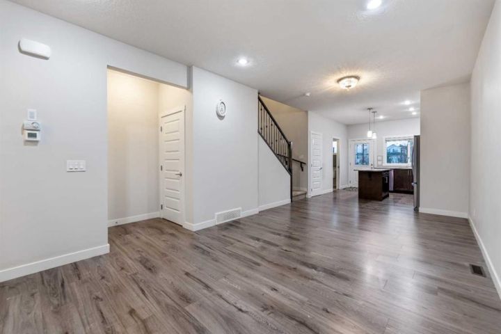 Welcome to 29 Saddlestone Link NE – a beautifully maintained townhouse with NO CONDO FEES and backing onto peaceful green space! This bright and spacious home features 3 bedrooms and 2.5 bathrooms, perfect for families or first-time buyers. The main floor offers an inviting living room, dining area, and a well-appointed kitchen with quartz countertops, a center island, tall ceilings, and plenty of cabinet space. Enjoy the convenience of an attached single garage. The upper level showcases a generous primary bedroom with a 3-piece ensuite and a walk-in closet with built-in organizers, along with two additional bedrooms and a full bathroom. Located in the heart of Saddleridge, this home is close to schools, parks, transit, shopping, and all amenities. A fantastic opportunity in a desirable community—don’t miss it!
