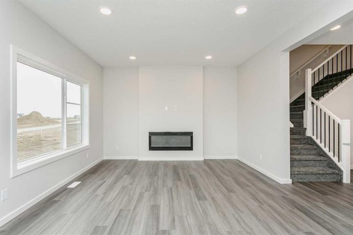 This 4 bed, 3 bath, 2004 sq ft home delivers standout flexibility and elevated style. A private separate entrance leads directly to the basement—perfect for potential future development The main floor bedroom with a full tiled bath adds convenience for guests or family. A spacious bonus room upstairs offers an ideal spot for movie nights or playtime. Enjoy modern finishes throughout: metal spindle railing, fireplace, knockdown ceilings, melamine shelving, and a functional mudroom bench. The kitchen shines with ceiling-height cabinetry, soft-close drawers, and a chimney hood fan. The primary bedroom features a dual-sink 4-piece ensuite, while a 9’ basement foundation expands future possibilities. Smart Home System included—control your lock, thermostat, and video doorbell with ease. Photos are representative.