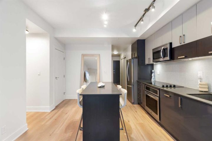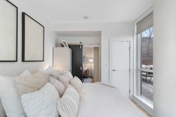 Welcome to #303 in the First East Village — one of the most unique units in the building. This exceptional condo features nearly 300 sq. ft. of private outdoor space with a natural gas line, offering a true backyard-in-the-sky experience — a rare find in downtown living. Inside, you’ll find a bright, modern floor plan enhanced by new light laminate flooring, sleek quartz countertops, and floor-to-ceiling windows that flood the space with natural light. The chef-inspired kitchen offers ample prep and dining space with a dual-purpose island and upgraded stainless steel appliances — perfect for cooking or entertaining. This functional 2-bedroom, 2-bathroom layout is designed for flexibility and comfort. The primary suite easily accommodates a king or queen-sized bed (as shown in photos), while the second bedroom offers versatile space for guests, children, or a home office. Enjoy air conditioning for year-round comfort and seamless indoor/outdoor living through direct access to your private terrace. Residents enjoy access to premium building amenities, including a rooftop patio with BBQ area, party room, guest suite, billiards room, and conference lounge — all available for private booking. This unit also includes one underground parking stall and a dedicated storage locker. Located in the heart of Calgary’s East Village, you’re steps from the RiverWalk, bike paths, Calgary Zoo, dog parks, community gardens, and the upcoming pickleball courts. Walk to nearby grocery stores, cafés, bistros, and local amenities, with quick access in and out of downtown via 6th Avenue or Memorial Drive. A truly rare downtown condo combining modern design, functional living, and exceptional private outdoor space.