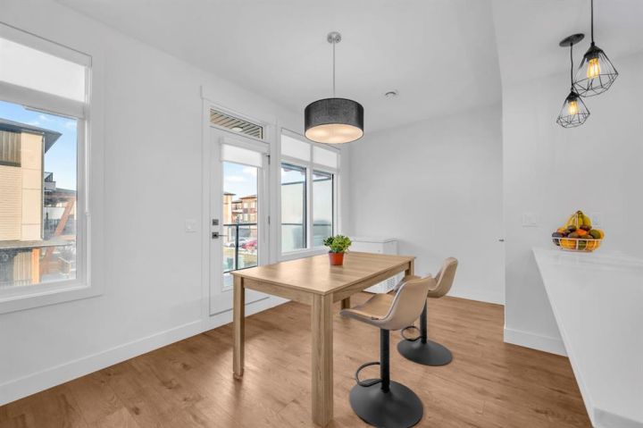 Welcome to this beautifully maintained 3 bedroom 2.5 bathroom home with a DOUBLE GARAGE and very LOW CONDO FEES, offering modern comfort and exceptional convenience in the highly desirable community of Saddle Ridge. Perfect for first time homebuyers and families looking for a newer home without breaking the bank. The bright open concept main level features 9 feet ceilings, a spacious living area, dining space and a well designed kitchen complete with a large pantry, stainless steel appliances and a generous island that makes cooking and entertaining effortless. Off the main floor, enjoy your huge private balcony that brings in plenty of natural light and adds valuable outdoor living space. Upstairs, the large primary bedroom offers its own private balcony along with an ensuite bathroom and ample closet space, while two additional bedrooms, a full bathroom and upper level laundry complete the top floor. The double attached garage provides secure parking and extra storage, with plenty of street parking available as well. The location is truly unbeatable with a bus stop right across the street and a local plaza steps away featuring a grocery store, pharmacy, pizza shop and restaurants for easy day to day living. You are also just minutes from the Savanna Plaza, Saddletown LRT, Genesis Centre, multiple parks and several schools including Nelson Mandela High School, Peter Lougheed School, Light of Christ Catholic School and Gobind Sarvar School. With quick access to Stoney Trail, Metis Trail, and the Calgary International Airport, commuting and travel are always convenient. This move in ready home offers comfort, accessibility and a prime location, making it an excellent opportunity for both families and investors.