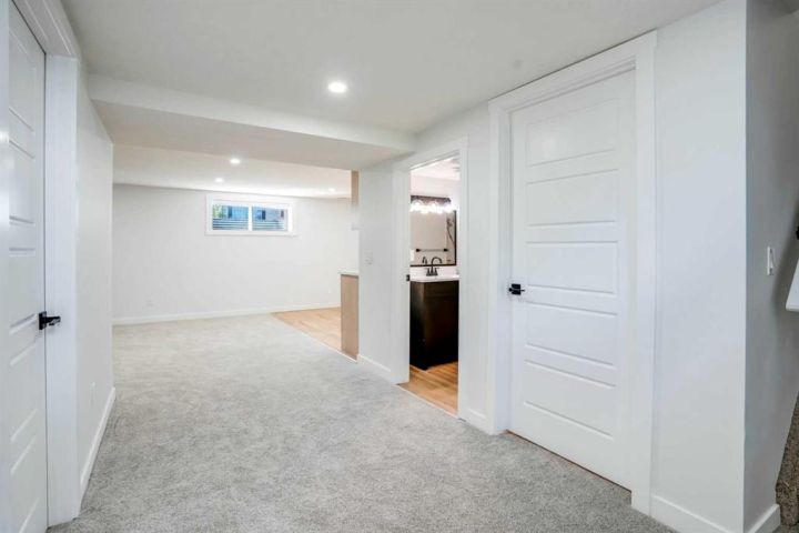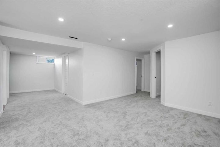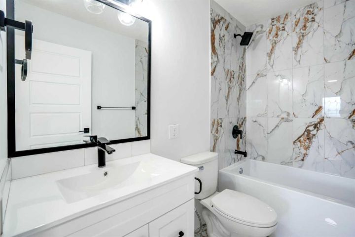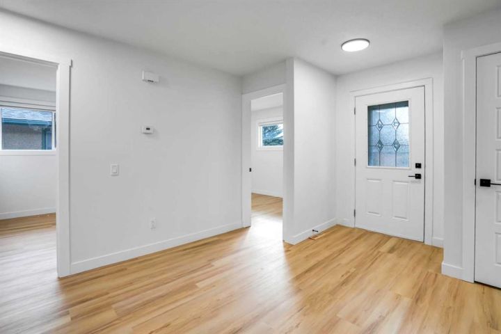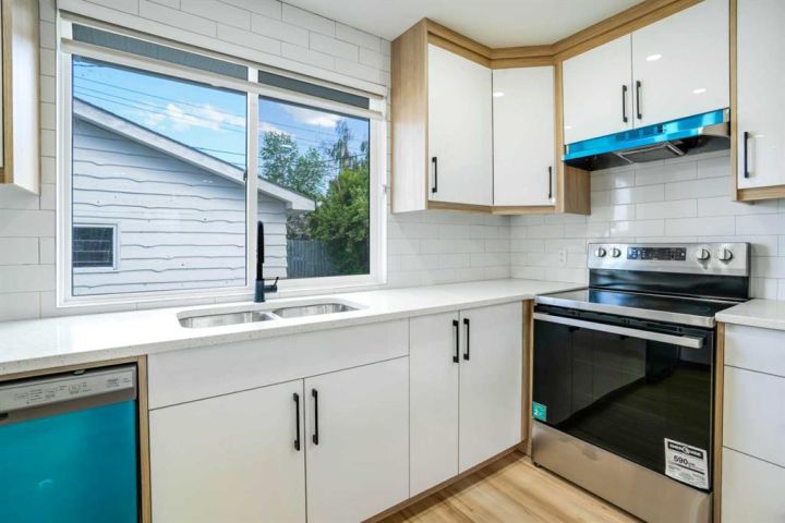 This fully renovated bungalow in Penbrooke Meadows offers a fresh, modern look and great convenience. Both the house and the detached double garage have brand-new roofs, giving you peace of mind for the future. The main floor has an open layout with lots of natural light, new vinyl plank flooring, newer windows, and a modern tiled electric fireplace. The high-gloss kitchen comes with new stainless steel appliances and plenty of cabinets. There are three generous bedrooms and an updated main bathroom, and the primary bedroom has its own private half-bath. There is also separate laundry upstairs for added convenience. The finished illegal basement suite adds extra living space, with an updated kitchen, a comfortable living area, two bedrooms, a full bathroom, and its own laundry—great for extended family or possible rental use. Outside, the large backyard offers lots of space for relaxing, entertaining, or projects. The detached double garage has a new door and opener, providing safe parking and extra storage. Located close to schools, playgrounds, and major amenities, this move-in-ready home is a fantastic opportunity for families and investors.