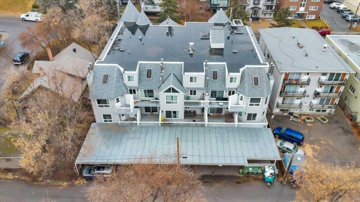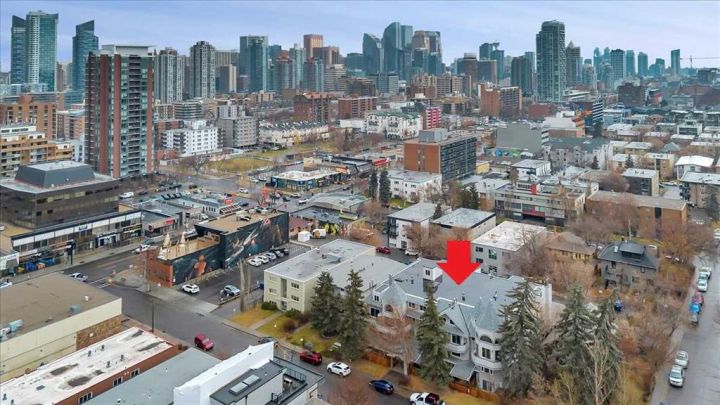 This is a standout spacious and upgraded unit with must-have features. Starting with the ideal CENTRAL LOCATION on a quiet street in Lower Mount Royal with easy access to restaurants, shops, downtown, and main roads. Everything you need is close by, including Mount Royal School, trendy 17th Avenue district, major transit routes, the Bow River Valley and more. This suite has modern finishes and functional layout with big separate living spaces allowing for many options to fit your lifestyle. The welcoming entrance gives access to a closet, half bathroom, upper level, and big dining space with a pantry to the side. The functional kitchen is complete with stainless-steel appliances, stone counter tops, soft close cabinets, and serving counter to a flex space. The grand living room features a two-story ceiling, fireplace, multiple west windows, and walkout to the patio. On the upper level the bonus space loft gives more options for living, work at home, gym, or a studio. The two bedrooms are big enough for a king bed and have great closet space. The main bathroom includes stylish finishes and shelving. Completing this full package is the laundry space with a top-end combination washer/dryer (non-venting). The 200+ sq ft private patio with evening sun is roofed, enclosed with fencing maintained by the condo, and finished with artificial turf. All spaces are bright, open, sunny, and easy keep. Most recent upgrades include the high efficiency wash/dryer, microwave hood fan, and various light fixtures. The fireplace is cleaned and inspected annually. Parking spot is covered, closest to back entrance, and easy access drive-through. This is a quiet and solid concrete frame building. It is well-maintained and funded. Common rooms include bike storage, recycling, and a laundry room. This MOVE-IN READY home truly is a must-see.