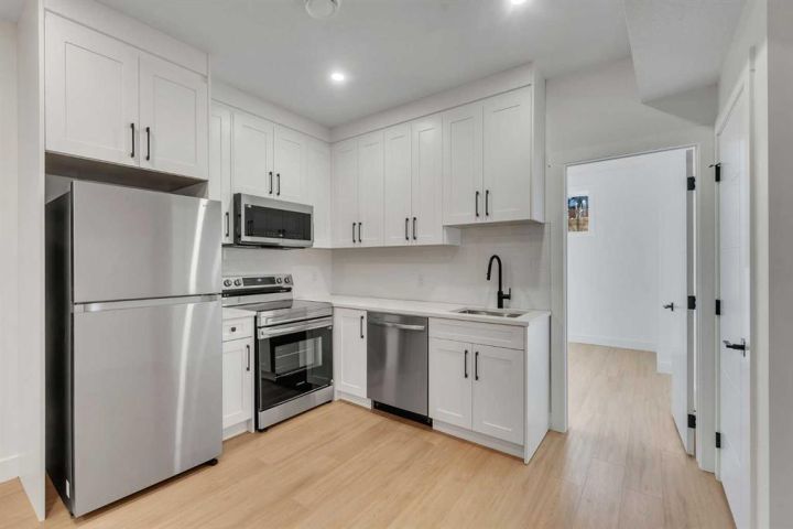 Welcome to Winston Heights Mountview! This modern infill comes with a legal basement suite with its own entrance and offers over 24000 sq. ft. of finished space. It features 5 bedrooms and 3.5 bathrooms, with high-end finishes throughout. The main floor has 10’ ceilings, big windows, an open dining area, and a stylish kitchen with quartz counters, a large island, and KitchenAid stainless steel appliances. The living room includes a gas fireplace, built-in shelves, and access to the patio. Upstairs you’ll find the primary bedroom with a 5-piece ensuite and walk-in closet, plus two more bedrooms, a full bathroom, and laundry. The basement has 9’ ceilings and a fully legal 2-bedroom suite with its own kitchen, living space, and laundry—great for family or rental income. This home also includes a double garage, downtown views from the front, and an excellent location close to schools, parks, shops, and just minutes from downtown. One of biggest backyards in this area.