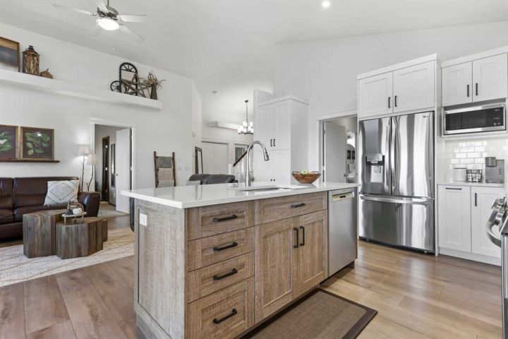 Welcome to 100 Hillcrest Boulevard, nestled in the highly sought-after neighbourhood of Hillview Estates. This exceptional home was built by Rich-Lee Custom Homes and offers a perfect blend of elegance, comfort, and functionality. Featuring a triple-car garage with an east-facing driveway and plenty of parking space, this two-storey split design combines the luxury of bungalow-style living with the privacy of an upper level that includes two additional bedrooms and a 4-piece bathroom — ideal for family or guests. The main floor is open concept, designed for both everyday living and entertaining. The kitchen was beautifully renovated in 2022, showcasing quartz countertops, a gas stove, a large island, and stunning west-facing views. A cozy gas fireplace adds warmth and ambiance to the living area, creating the perfect space to relax and unwind. The primary bedroom is a true retreat, featuring a spacious walk-in closet, a 5-piece ensuite, and gorgeous west-facing views of the surrounding landscape. The fully finished walkout basement offers incredible versatility with a bedroom, 3-piece bathroom, a den, a bar area with plumbing ready for a wet bar, a large family room, and a spacious utility room with built-in storage. Step out to your private walkout patio, already wired for a future hot tub — the perfect spot to unwind at the end of the day. The landscaped yard includes underground sprinklers and a storage shed, making outdoor living both beautiful and easy to maintain. Living in Hillview means enjoying space, privacy, and sweeping views — all in a welcoming community. Contact your agent today to schedule a private tour of this beautiful home!