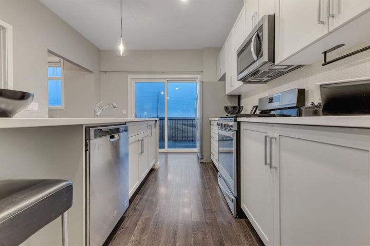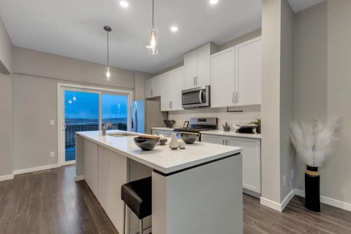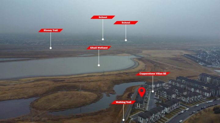 Welcome to this beautiful 2-bedroom, 2.5-bathroom townhome in the quiet and private Copperfield Chalet community at 116 Copperstone Villas SE. With modern finishes, a functional layout, and rare natural wetland views, this home offers the perfect blend of comfort, convenience, and lifestyle. Step inside to a bright, open-concept main level where large windows and thoughtful design make the space feel warm, inviting, and spacious. The heart of the home is the stunning chef-inspired kitchen, complete with white cabinetry, quartz countertops, stainless steel appliances, a large centre island, and seamless access to your private deck—ideal for morning coffee, evening BBQs, or simply taking in the serene surroundings. The main floor also features generous living and dining areas, creating an effortless flow for both everyday living and entertaining. A convenient 2-piece powder room completes this level. Upstairs, you’ll find two spacious primary-style bedrooms, each with its own walk-in closet and private ensuite, offering outstanding comfort and privacy—perfect for roommates, guests, or a growing family. The lower level adds even more versatility with a dedicated tech/flex room, ideal for a home office, workout area, or creative space. An attached garage provides both convenience and additional storage. What truly sets this home apart is its setting: backing onto Copperfield’s beautiful walking trails and protected Alkali wetlands, offering a peaceful buffer from traffic and a natural, retreat-like atmosphere right outside your door. Playgrounds, green spaces, schools, and everyday amenities are all just steps away, making this location as practical as it is picturesque. This move-in-ready townhome is an excellent match for first-time buyers, young professionals, investors, or anyone seeking low-maintenance living without compromising on style or surroundings. Don’t miss your chance to experience Copperfield Challet living—book your private showing today!