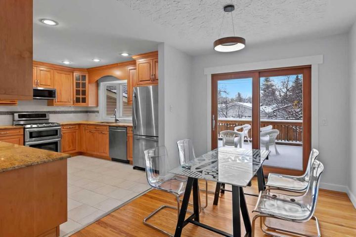 Come SEE us at the OPEN HOUSE on Friday Nov.21 from 3pm-5pm. Priced to sell in North Glenmore Park just steps to Earl Grey Golf and Glenmore Park. This NEW listing won't last the weekend! Nestled on a serene, tree lined street —on the Lakeview side of Glenmore Trail is this hidden gem, a beautifully maintained 4-level split offering 4 bedrooms, 2 bathrooms, and over 2,450 sq ft of total living space. Built in 1961, the home blends mid-century charm with modern updates. Mature trees, including a weeping birch and large spruce, frame the property alongside interlocking stone walkways and front drive. Inside, the bright living and dining areas feature a corner gas fireplace, bay window, patio doors to the west-facing deck, and gleaming hardwood floors. The updated kitchen impresses with stainless-steel appliances, a gas stove with double oven, microwave hood fan, granite countertops, tile flooring, and ceiling-height custom cabinetry. Upstairs are three comfortable bedrooms and an updated main bath. The walkout third level offers a fourth bedroom, a cozy family room, a 3-piece bath and a spacious mud room with lockers, leading to the west facing, fenced and landscaped back yard. Plus, you get an insulated & heated double detached garage. An upper deck with a motorized awning, a lower patio with BBQ area, shed, perennial gardens, and a grassy play space complete this backyard oasis. The finished lower level adds abundant storage, a flex area, laundry, and a convenient crawl space. Steps from the Glenmore Reservoir, canoe and rowing clubs, Earl Grey & Lakeview Golf Courses, top-rated schools, and extensive parks and pathways, this home combines charm, comfort, and an unbeatable location in one of Calgary’s most desirable neighborhoods. Quick commute to Downtown just 15 minutes and Ring Road around the corner.