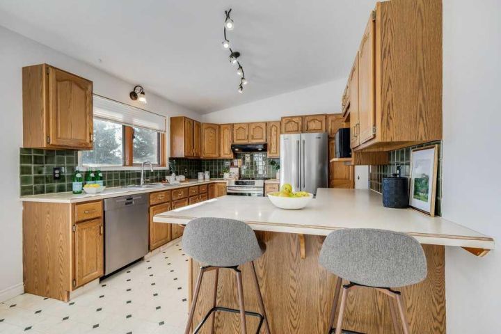 Cozy, updated, and in a fantastic location with over 2230 sq ft of finished living space – welcome to 34 Tiller Place SE in Airdrie. This charming 4-level split sits in an established neighborhood close to schools, parks, East Lake, the rec center, and Genesis Place, making day-to-day life super convenient. Inside, you’ll love the airy feel of the vaulted ceilings, knockdown finish, and all the updated lighting and pot lights that brighten the main living areas. The layout gives everyone their own space with multiple living areas on different levels – perfect for families, guests, or working from home. The upper floor features a beautifully renovated bathroom, and the primary bedroom comes with a custom closet for extra organization.The third level offers a walkout to the yard, and there’s also a cosy basement family room for movie nights or a kids’ hangout zone. Behind the scenes, the big-ticket items are taken care of: the home has all new plumbing lines (no Poly-B), a newer furnace, central air conditioning, and newer appliances – including an induction cooktop in the kitchen. Outside, the lot is truly impressive – a massive, mature yard with plenty of trees, space to play, garden, or relax. The newer composite deck is perfect for BBQs and summer evenings, and the back alley access adds flexibility for future plans. If you’ve been looking for a warm, well-cared-for home in a great Airdrie location with a huge yard and smart updates already done, this one is a must-see.