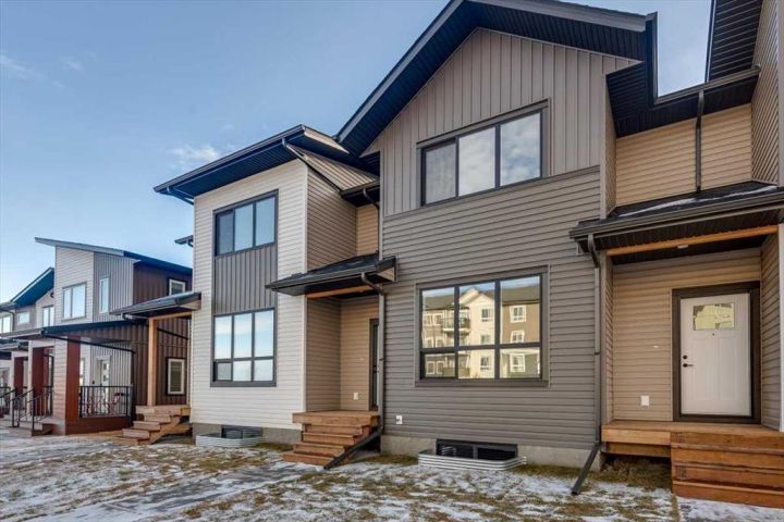 TURN THE KEY & just start moving right in! Blinds, 6 appliances, fence & sod all included with No condo fees! Brand New, Stylish, modern 2 Storey Townhomes in the new area of Iron Gate. IMMEDIATE possession! Say Goodbye to the stress of older homes & get Alberta New Home Warranty plus additional builder warranty by winner of the 2024 Builder of year award, Asset Builders Corp. Step onto your 7'x7' front deck, into your spacious entry & you are greeted by a bright & spacious open layout on this main floor. Check out all the natural sunlight through these large energy efficient triple pane windows & you will love this amazing vinyl plank flooring throughout w/cushy carpet in the bedrooms upstairs. The kitchen is the heart of the home, with a large island w/extended Quartz countertops (perfect for your stools, kids homework sessions, or long chats while cooking), built in pantry area, & 4 stainless kitchen appliances included. Dining room will fit your large tables & extra family members. The favorite space of all parents out there is this back entry w/half bath @ the back door that leads to your 10'6"x10' back deck w/aluminum railing & sunny south facing & sodded backyard for all those sun worshippers out there, with vinyl fence & a 20x20 gravel parking area, room for 2 car parking off paved back lane. Upstairs you will find the handy laundry room (with stacker washer & dryer included), 2 good sized bedrooms, a full main bath + a Primary bedroom that features a large walk in closet & full 4 piece ensuite. Extra bonus is the huge hallway closets that make the best use of space! Downstairs is open for your inspiration, planned for future bdrm, bath & family room w/plenty of natural light & extra storage. GST included w/rebate to builder. This newer neighborhood is close to shopping, food & highway. A single detached garage can be built on this property in the future.
