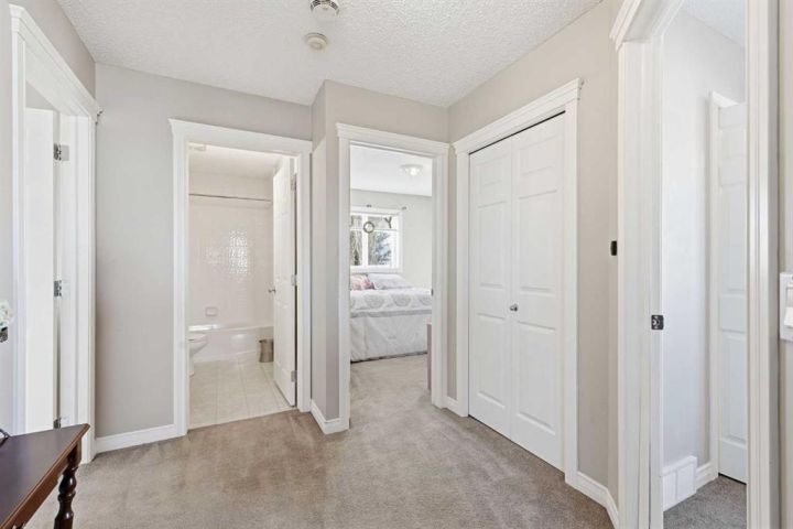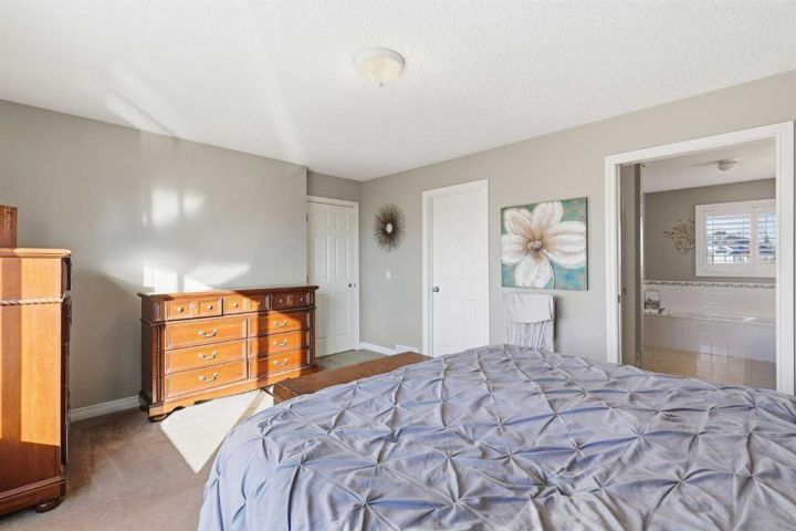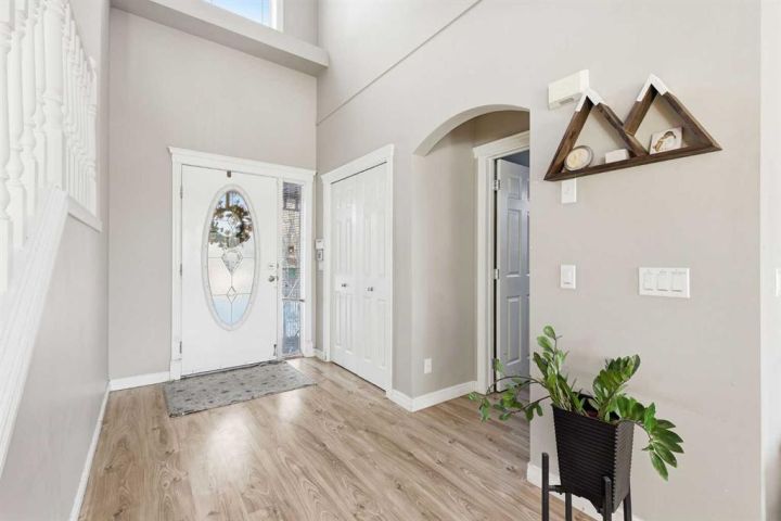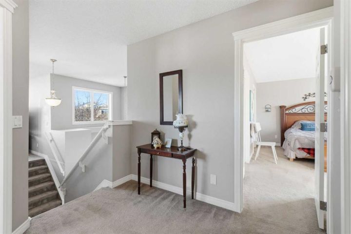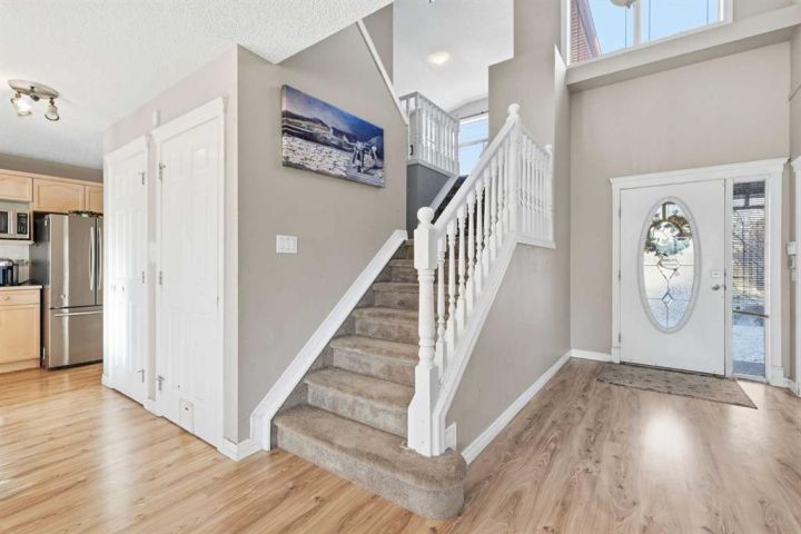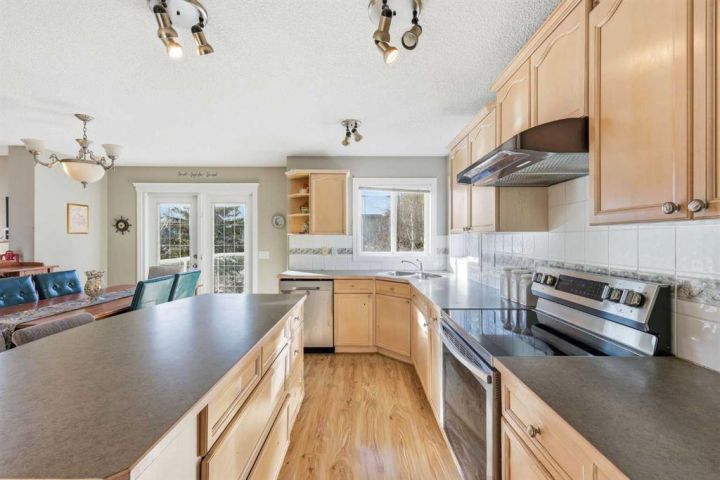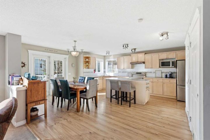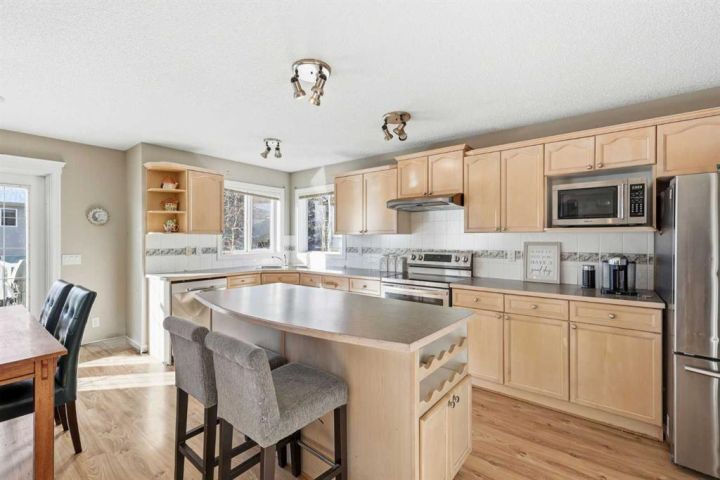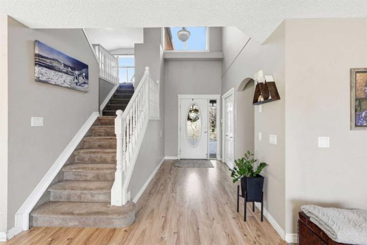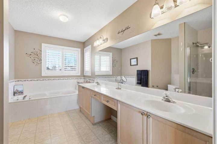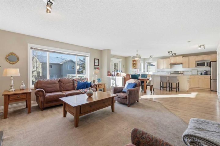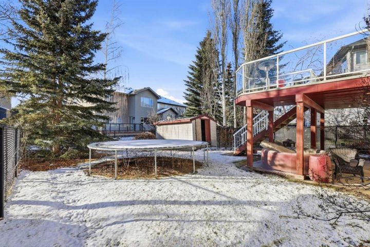 This inviting 2-storey walkout in West Springs delivers comfort, space, and the kind of location that makes daily life feel effortless. Nestled in a high-demand Calgary community, the home sits just blocks from West Springs Park and is moments from top-rated schools, including Dr. Roberta Bondar School and West Ridge School. Easy access to Bow Trail and Stoney Trail creates a smooth launch point to anywhere in the city. Inside, the main floor feels bright and connected, with a generous great room, sunlit nook, and spacious kitchen that form a natural gathering hub. The family room’s gas fireplace offers a warm retreat when the evenings settle in. Upstairs, you’ll find three bedrooms, including a roomy Primary Suite complete with private ensuite and uplifting mountain views. With 3.5 bathrooms throughout the home, everyone has space to start the day unrushed. The fully developed walkout basement adds even more room to spread out, featuring 8-foot ceilings and a cozy rec area with a dry bar tucked neatly to the side — perfect for guests, teens, or weekend downtime. Step out into the southwest-facing yard, set on a beautifully landscaped 5,543 sq ft reverse-pie lot with mature trees, lawn, shrubs, and a raised Duradeck for long afternoons in the sun. A handy garden shed waits to store your seasonal gear. The oversized 24’x24’ heated and drywalled garage keeps vehicles warm through Calgary winters, while central air conditioning keeps the summers gentle. The home also features newer vinyl siding and asphalt shingles (replaced in 2010–2011) for peace of mind. With parks, playgrounds, and sports fields just a short stroll away — plus outstanding school proximity and major routes close at hand — this home blends family-friendly living with everyday convenience in one of the city’s most sought-after neighbourhoods.