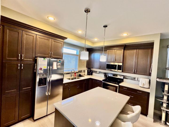 Welcome to this stunning 2-storey home located in one of the area’s most desirable neighbourhoods. From the moment you arrive, you’ll be impressed by the amazing curb appeal, thoughtful design, and high-quality finishes throughout. Step inside to an inviting, open-concept layout featuring beautiful accents, modern colours, and a bright, airy feel. The kitchen offers stylish cabinetry, premium finishes, and plenty of space for cooking and entertaining. The living area is warm and welcoming, highlighted by elegant details and large windows overlooking the serene green strip behind the home. Upstairs, you’ll find well-designed bedrooms, including a spacious primary suite perfect for unwinding after a long day. With air conditioning, this home ensures year-round comfort. Outside, enjoy the peaceful backyard setting with no neighbours directly behind—ideal for relaxing evenings, morning coffee, or entertaining guests. This home offers the perfect blend of style, comfort, and location—all in a beautiful neighbourhood known for its quiet streets, parks, and family-friendly atmosphere.