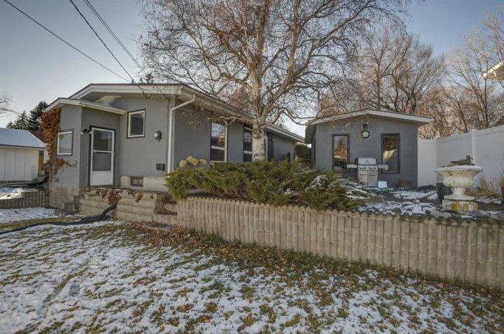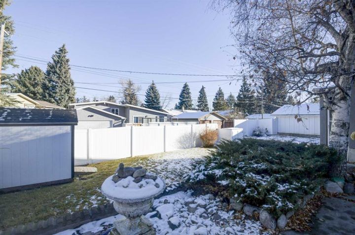 Charming 1125 sq. ft. bungalow sits on one of the best streets in Lakeview, situated on a pie-shaped 5,200 sq ft lot with mature trees, vinyl fencing, a large patio, and a storage shed. Inside, you'll find vaulted ceilings that enhance the spacious, open feel of the home, while the updated black kitchen with granite countertops and stainless-steel appliances adds a modern touch. The bright main floor includes a large primary bedroom with a walk-in closet, a generously sized second bedroom, and an oversized bathroom with a soaker tub and separate shower. The fully developed basement features a brick faced gas fireplace, a spacious rec room with a wet bar, a large bedroom (non-egress window), a 2-piece bath, and plenty of storage. Well maintained with updated roofing and furnace, this home also includes a front-facing single garage with driveway parking and rear alley access. Ideally located close to North Glenmore Park, top-rated schools, shopping, transit, and the Glenmore Reservoir, with quick road access to Crowchild Trail and Stoney Trail, making this one of Lakeview’s most desirable opportunities.