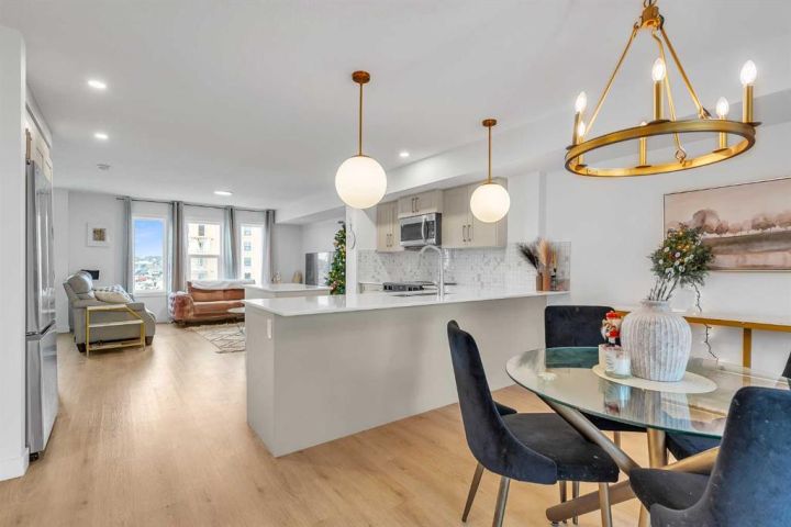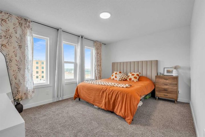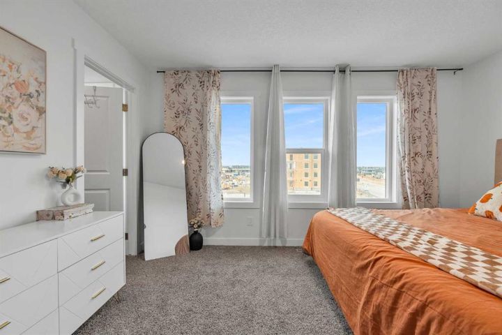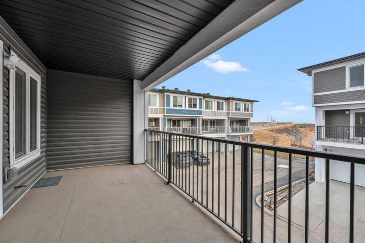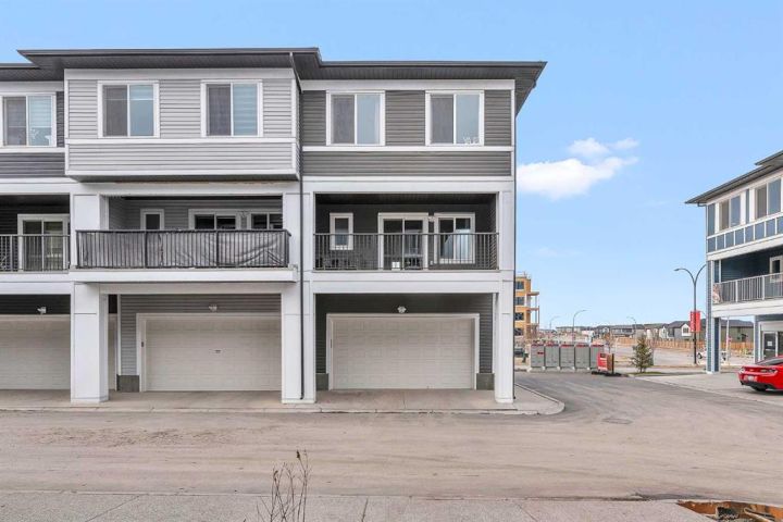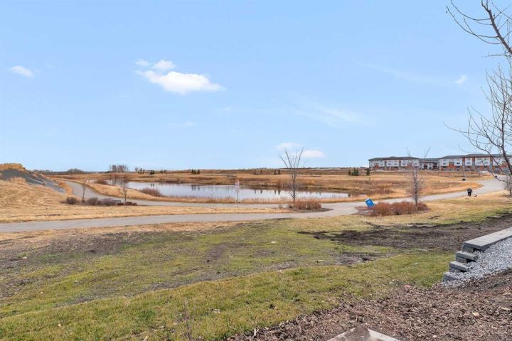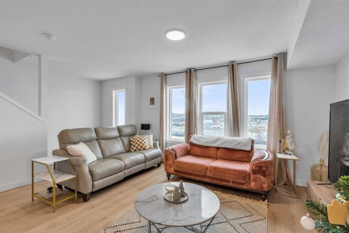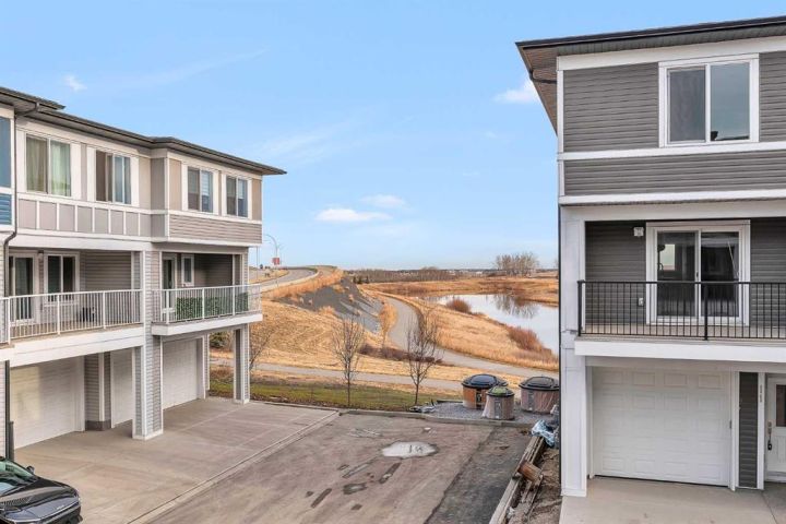 Beautiful Corner-Unit Townhouse | Extra Privacy | Pond Views | Buyer Incentive! This immaculately kept corner-unit stands out as the most private and desirable home in the complex, offering unmatched separation with no neighbor to one side and an open, airy exposure that fills the home with natural light. Positioned closest to (but not directly on) the main road, the location provides enhanced security and visibility that safeguards your home and vehicle. From the moment you step inside, you’re greeted by soft, neutral tones and an open-concept layout that feels warm, modern, and effortlessly inviting. Stunning quartz countertops are throughout the home, complemented by elegant gold hardware on freshly painted cabinetry. Stylish kitchen light fixtures and a statement chandelier in the dining area create an elevated, cohesive design. As you walk through the main living space, large windows frame serene pond views and beautiful east-facing sunrises, adding a sense of calm to your daily routine. The attached garage offers convenience year-round, while the lower-level office space provides the perfect spot for remote work or a quiet study area. Upstairs, you’ll find three spacious bedrooms, including a gorgeous primary suite with a double-sink ensuite designed for both comfort and luxury. Every detail of this home has been thoughtfully cared for, and the exterior includes durable Hardie siding with stone accents for extra protection against hail and weather. *Move in with confidence: this home was professionally inspected at possession, is backed by the Alberta New Home Warranty Program (1–10-year coverage) and will be professionally cleaned upon firm sale. As an added incentive, buyers can choose either a full reimbursement of their home inspection or two months of condo fees paid by the seller. With a brand-new retail plaza going up across the street—including a Tim Hortons—everyday convenience is right at your doorstep. This is truly the standout unit in the complex—bright, private, stylish, and exceptionally maintained. Quick possession is available due to seller relocation. Homes like this don’t come up often, and this one won’t last.