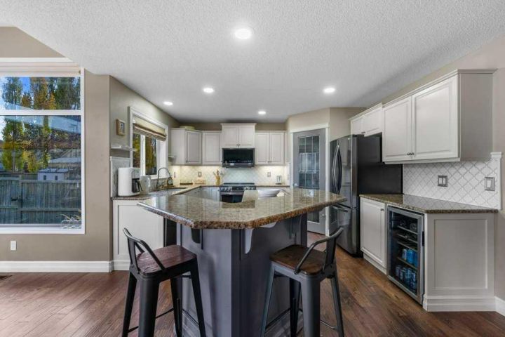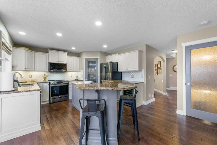 **Open house Sunday Nov 23, 1-3pm ** Stop settling for less. This stunningly updated 2,420 sq ft Jayman home in Cranston is turn-key luxury built for a large family. The property features an exceptional layout with six total bedrooms (four up, two down) plus a dedicated basement office/den, ensuring maximum space and functionality. Inside, the home delivers total indulgence. The refreshed kitchen with granite counters and all new appliances opens seamlessly to the relaxing family room and a bright dining nook that is encased in windows. You benefit from air-conditioning, a heated garage, and designer Hunter Douglas blinds throughout, all supported by updated high-efficiency mechanicals for superior comfort. The luxurious primary suite boasts a spa-inspired ensuite with a multi-nozzle rain shower. Entertainment is ready to go in the fully finished basement's large rec room, which features a functional wet bar and wine fridge. Outside, forget the weekend work. Your private backyard area is a zero-maintenance paradise thanks to the artificial turf, coupled with a pergola-covered deck and garden areas perfect for summer living. Located mere minutes from the Cranston Rec Centre, schools, and Fish Creek Park, the home also provides easy access to Deerfoot and Stoney Trail. This spectacular, fully upgraded home is ready for immediate move-in. Don't miss this opportunity - Call today